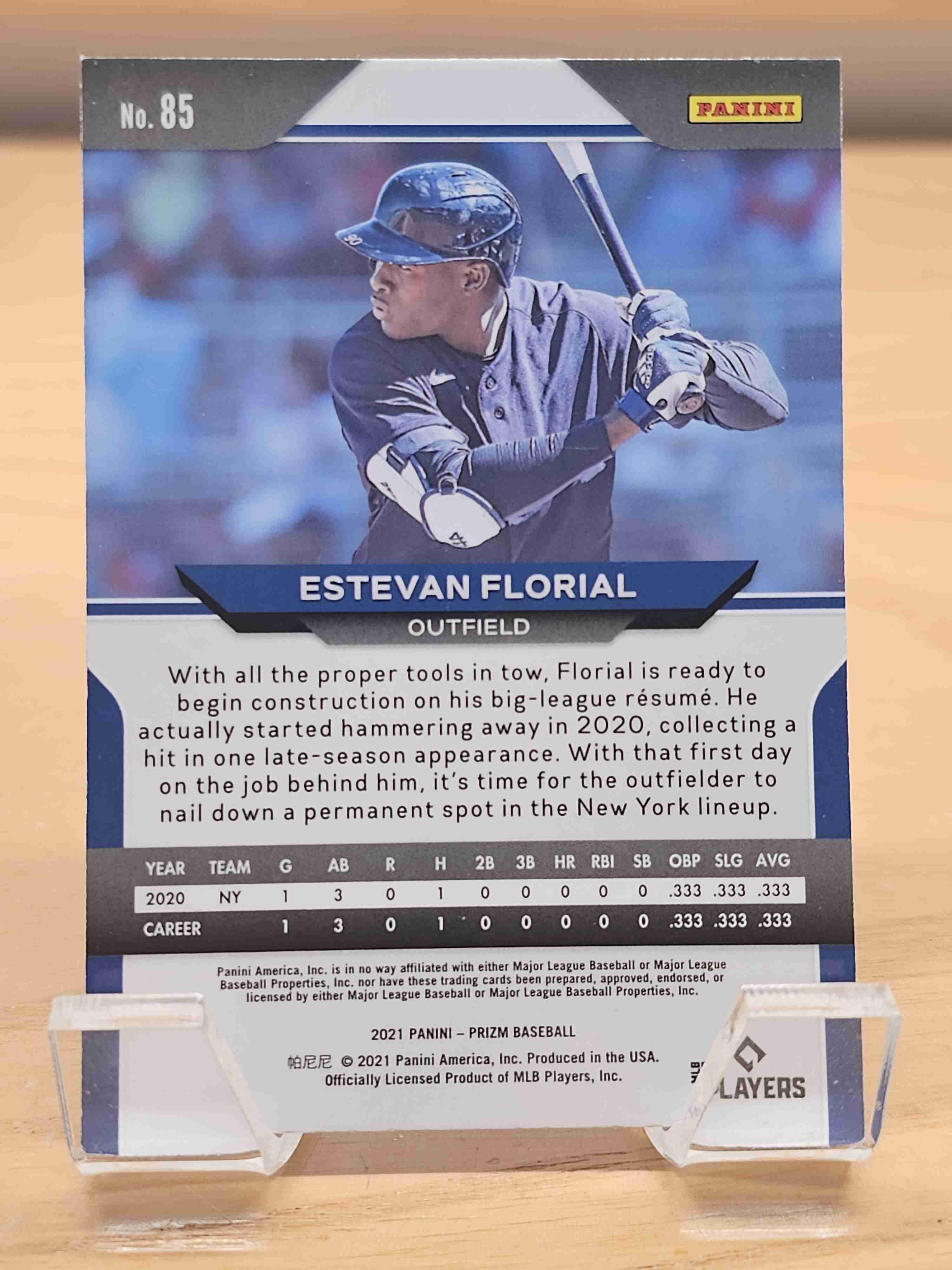 2021 Panini Prizm Baseball Rookie RC Estevan Florial New York Yankees Card #85