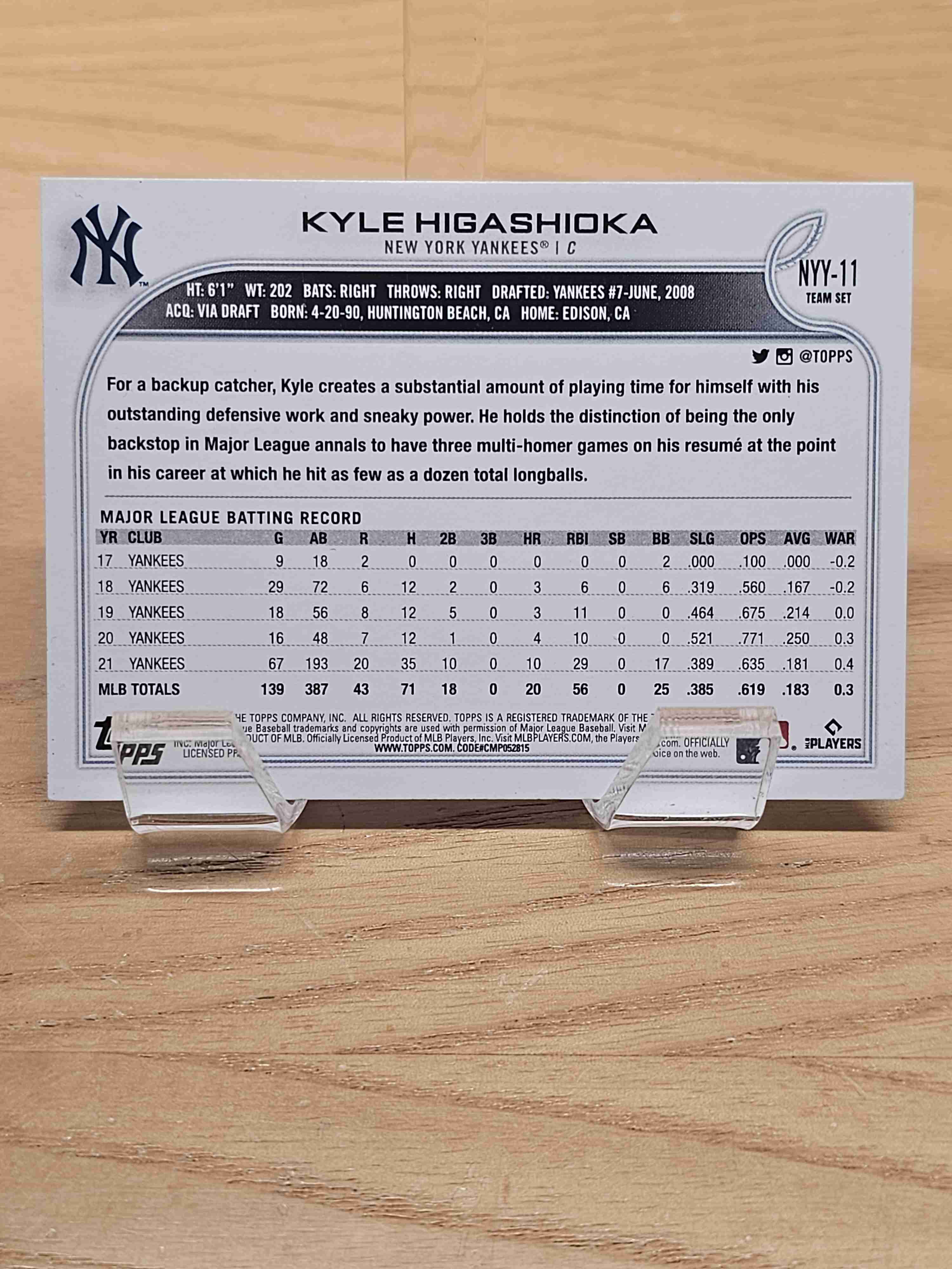 2022 Topps Baseball New York Yankees Team Set Kyle Higashioka New York Yankees Card #NYY-11