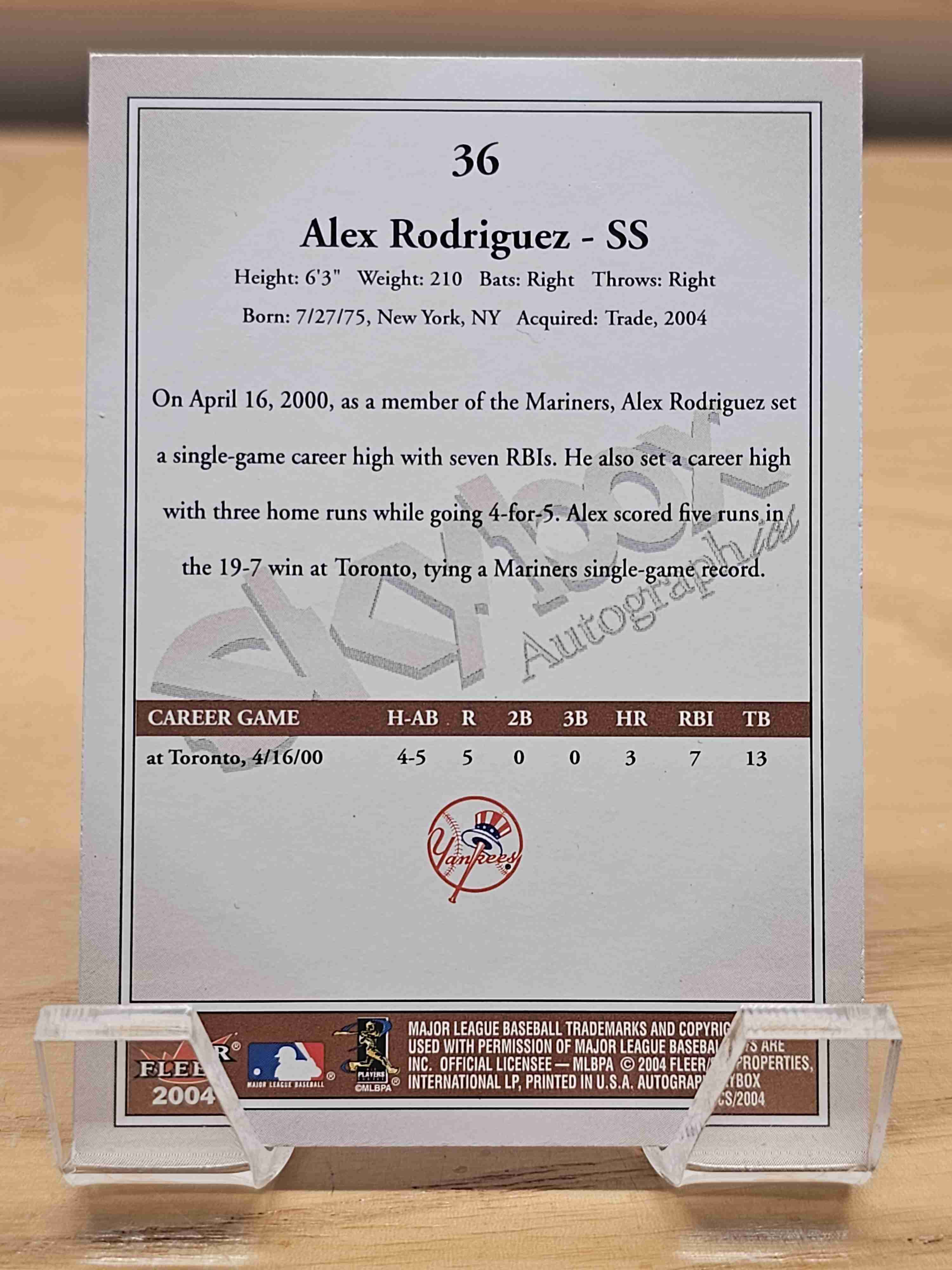 2004 Fleer Skybox Autographics Alex Rodriguez Yankees #36