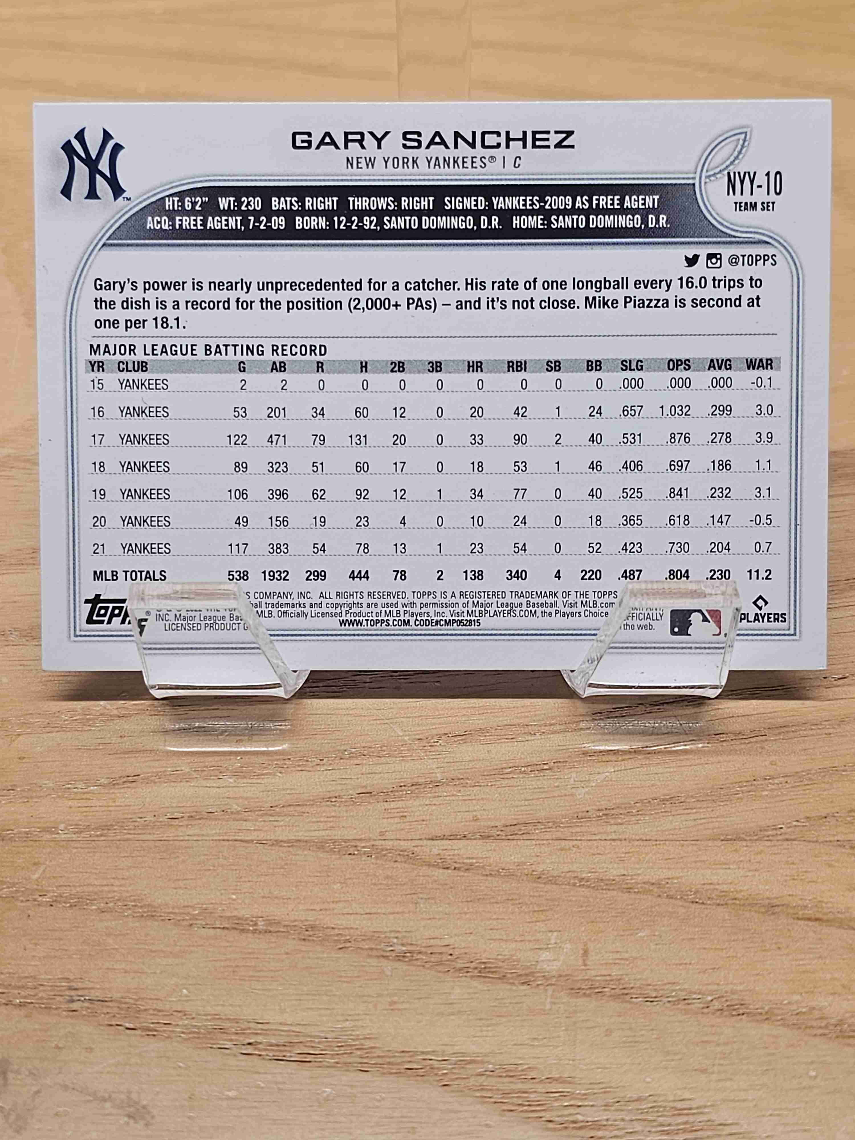 2022 Topps New York Yankees Team Set Gary Sanchez #NYY-10
