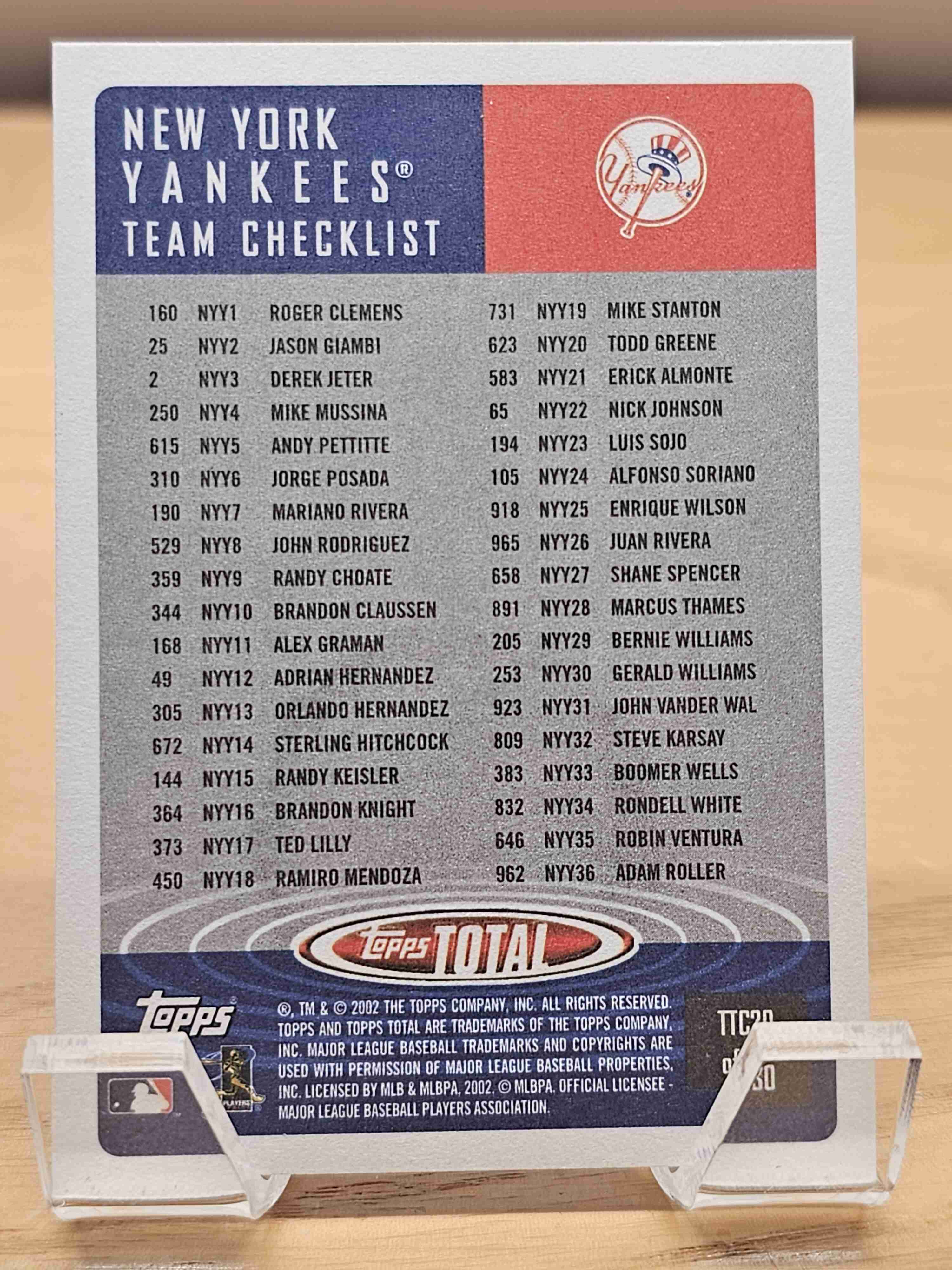 2002 Topps Total Team Checklist Derek Jeter Yankees #TTC20