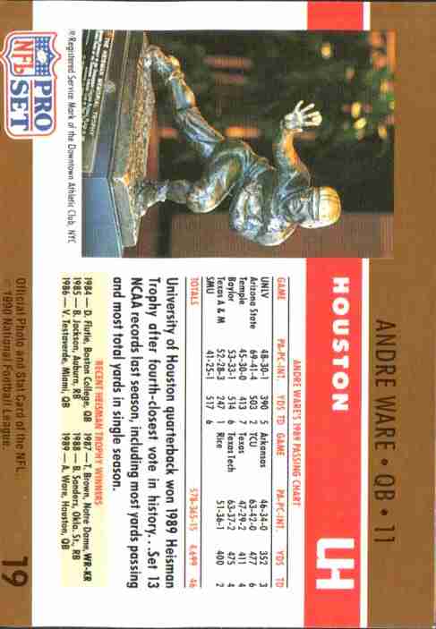 Andre Ware #19 [Rookie] 1990 Pro Set