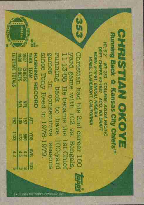 Christian Okoye #353 1989 Topps