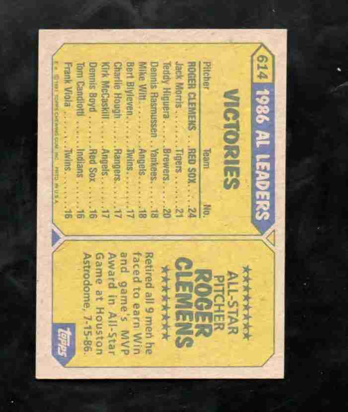 1987 Topps # 614 ROGER CLEMENS Red Sox All-Star