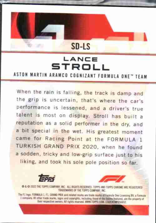 Lance Stroll #SD-LS 2022 Topps Chrome Formula 1 Speed Demons