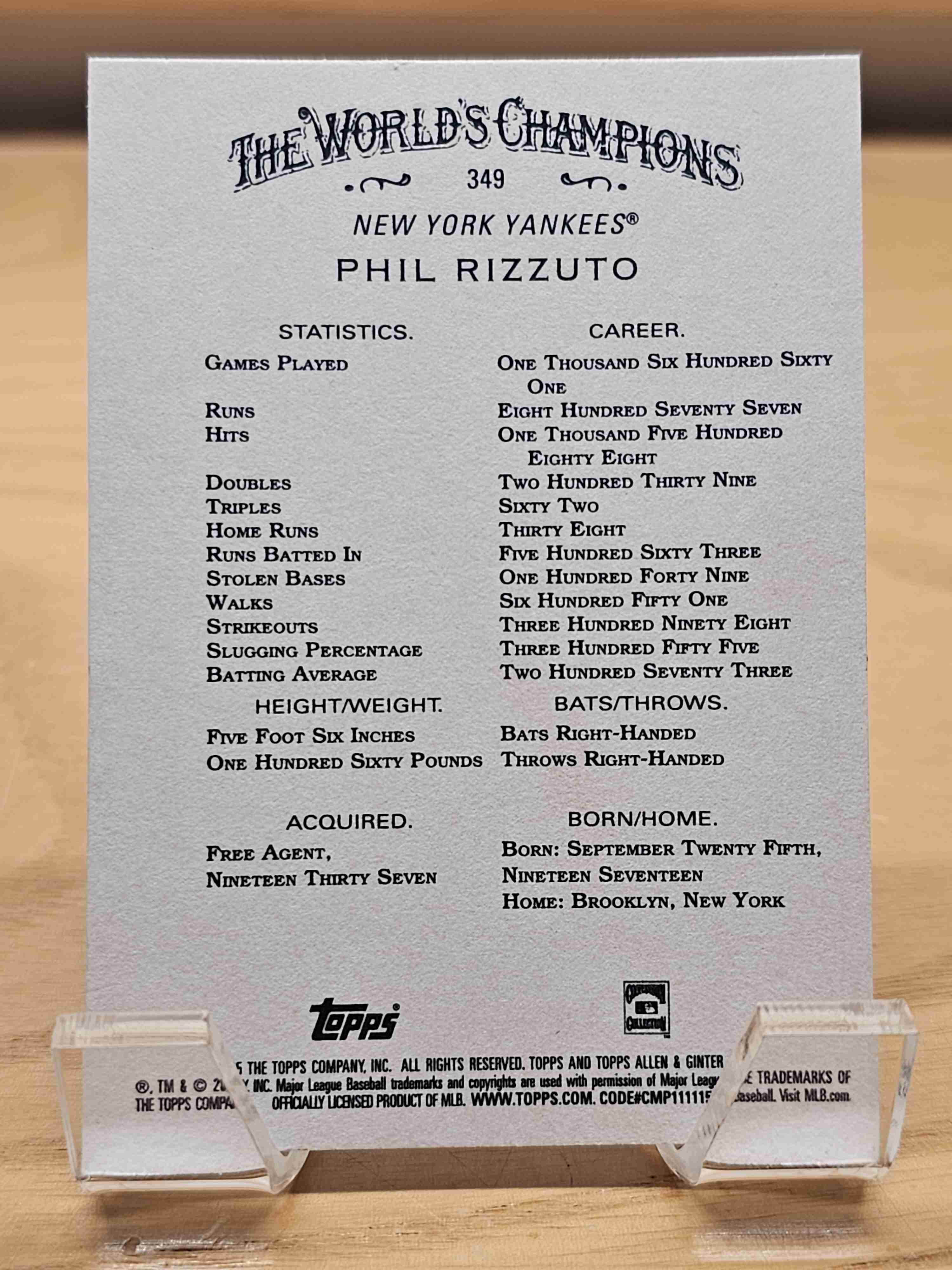 2025 Allen & Ginter Base Card Phil Rizzuto Yankees #349