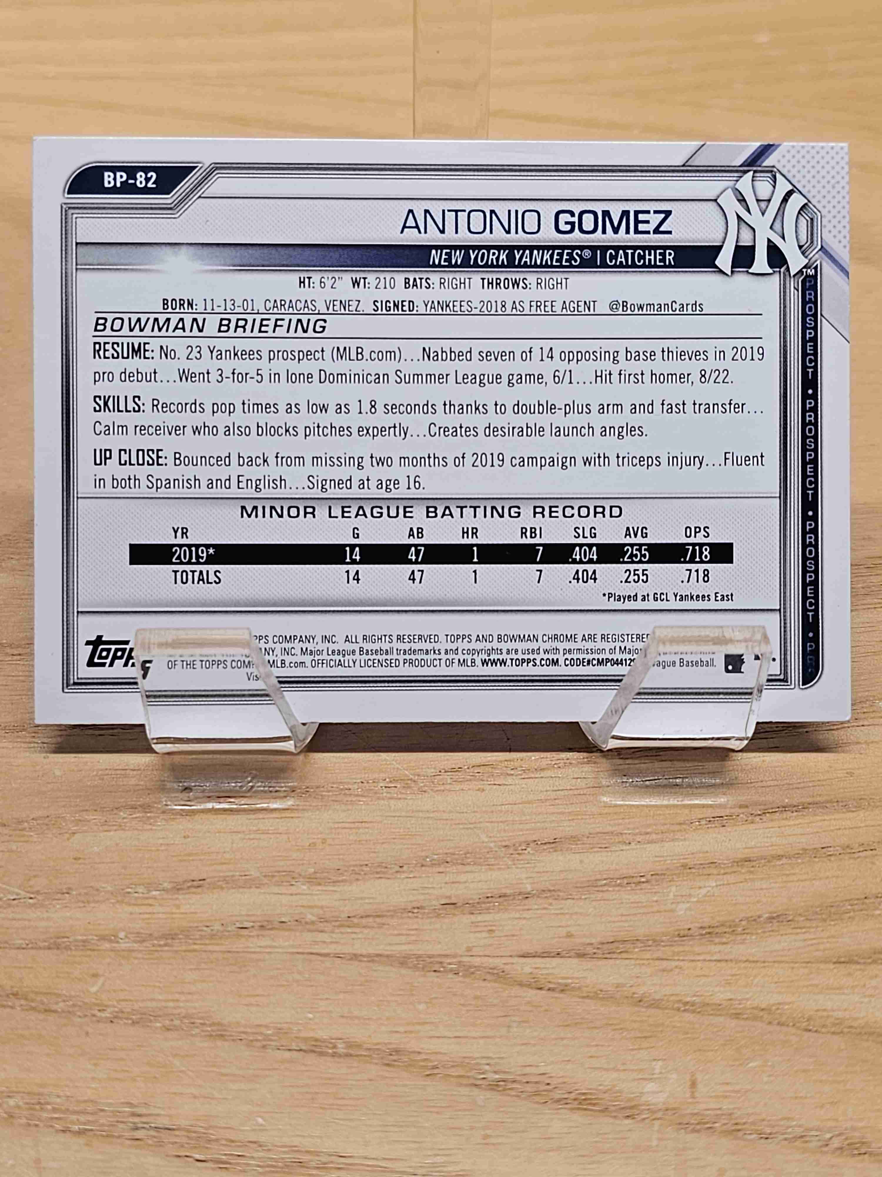 20211st Bowman Prospects Antonio Gomez Yankees #BP-82