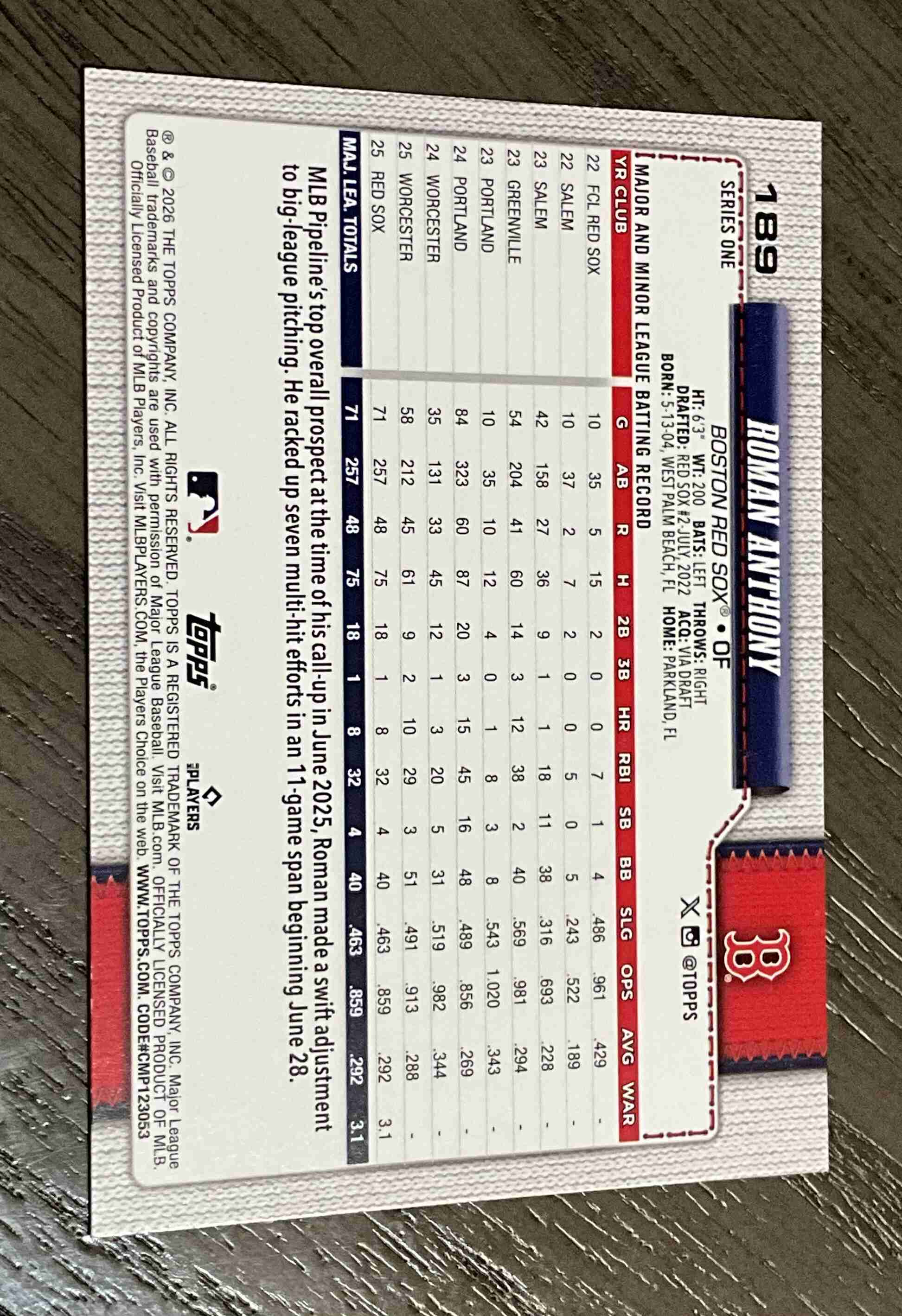 Roman Anthony Rookie 2026 Topps Boston Red Sox