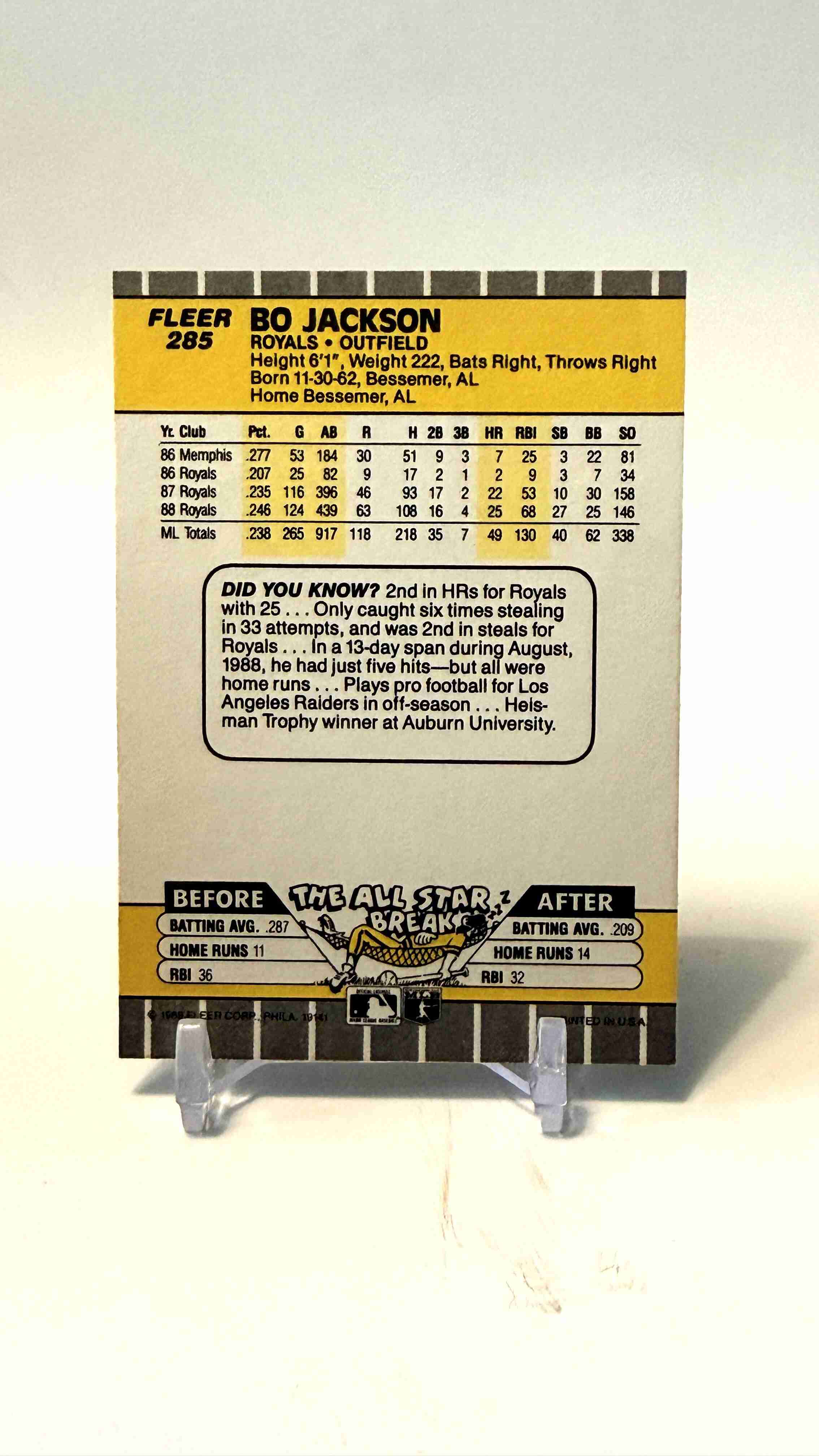 1989 FLEER BO JACKSON KANSAS CITY ROYALS #285