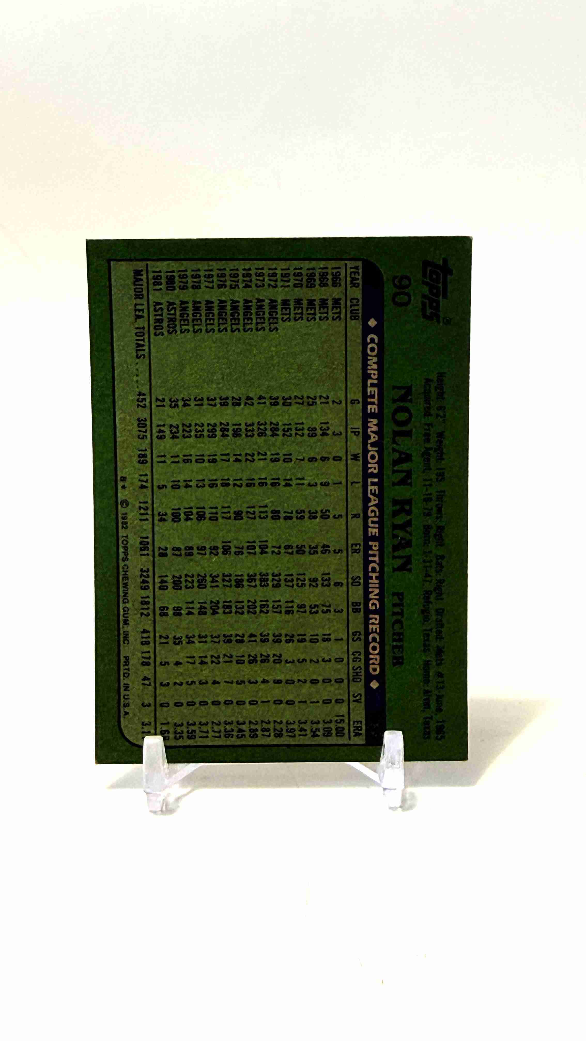 Topps MLB Trading Card 1982 Nolan Ryan #90