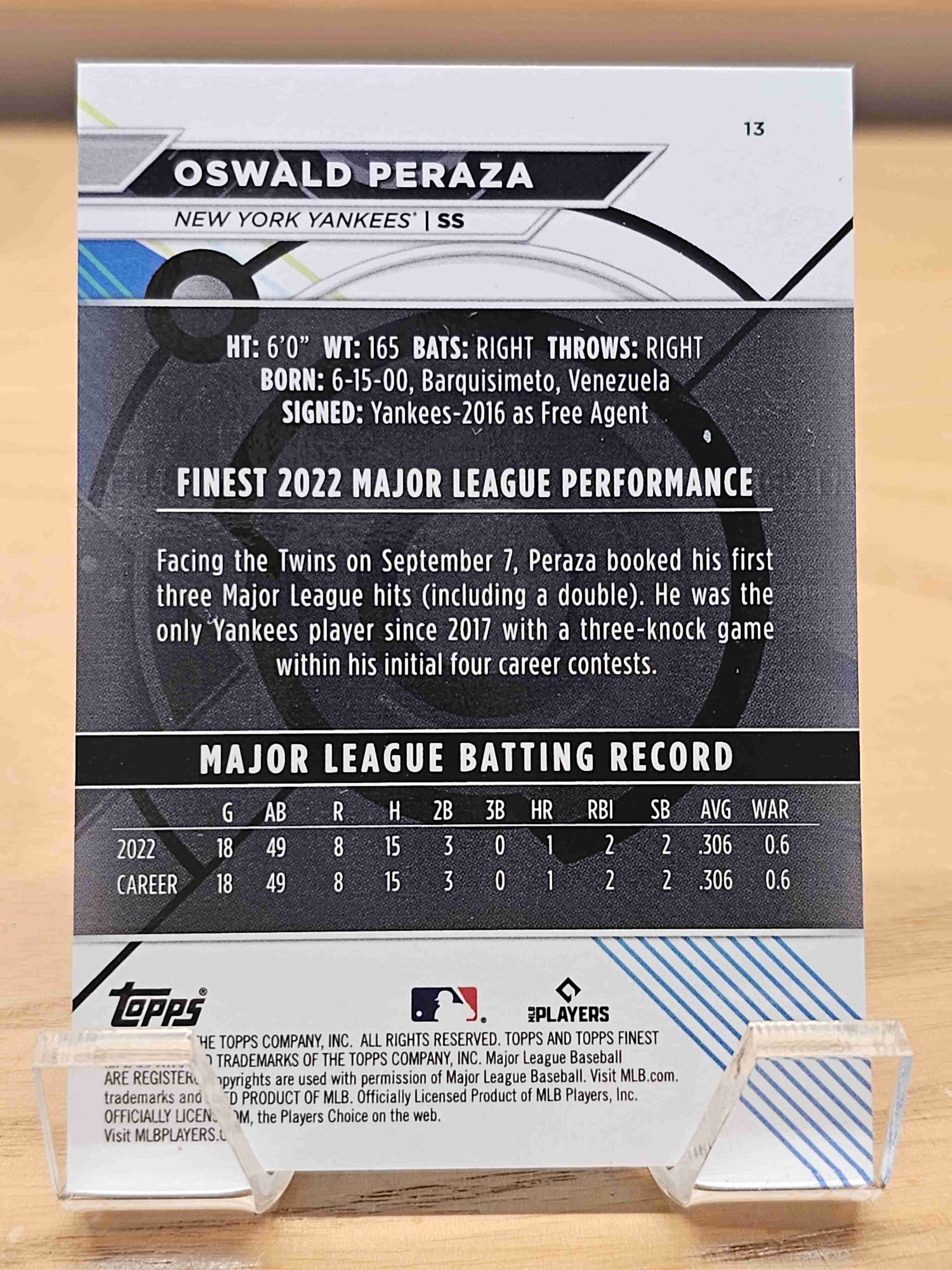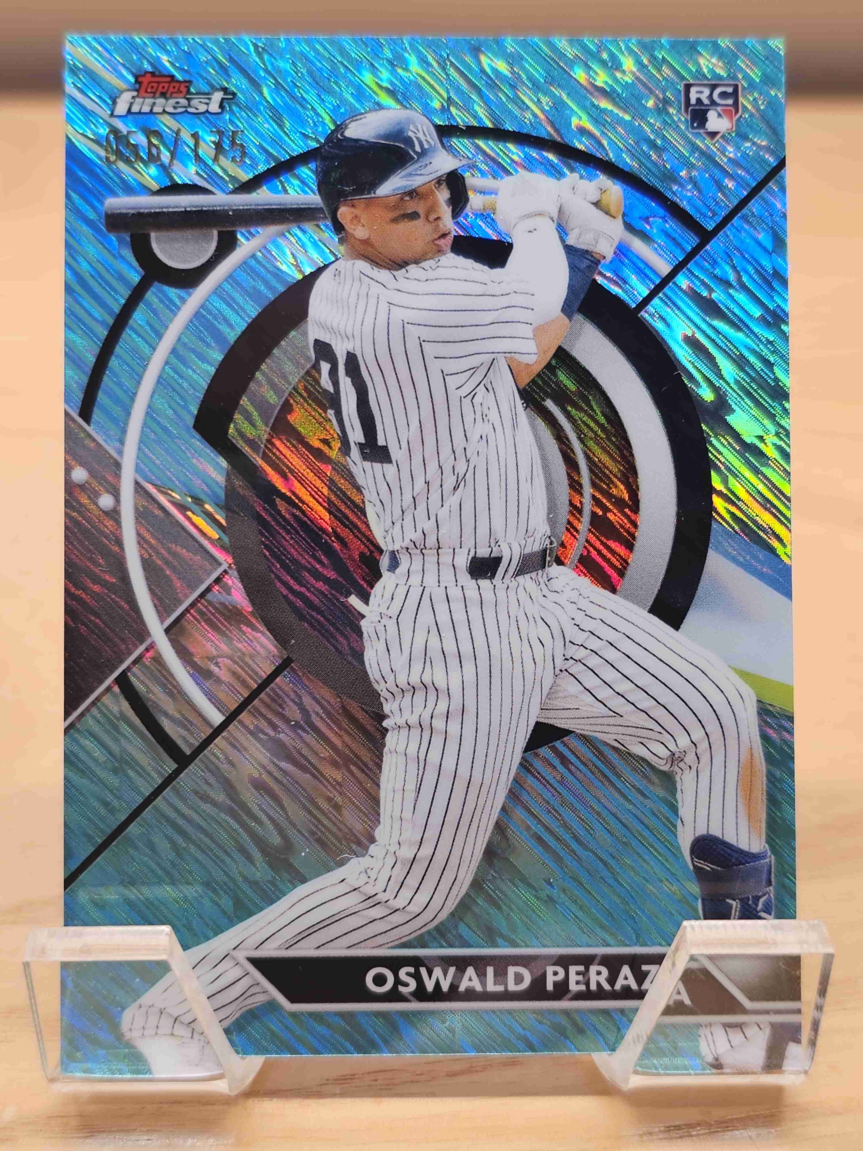 2023 Topps Finest Baseball Aqua Shimmer Refractor Rookie RC /175 Oswald Peraza New York Yankees Card #13