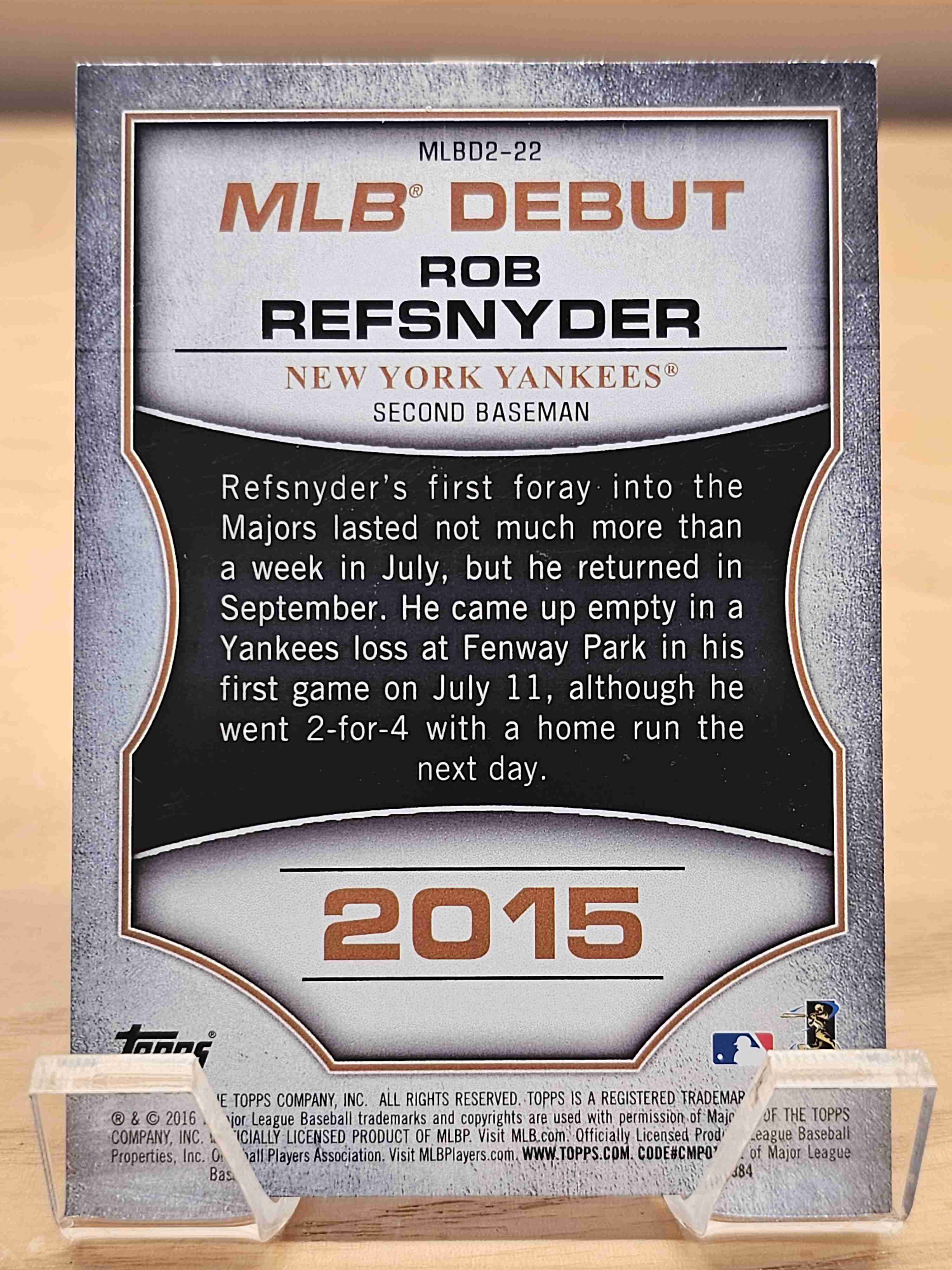 2016 Topps Baseball 2015 MLB Debut Rob Refsnyder New York Yankees Card #MLBD2-22