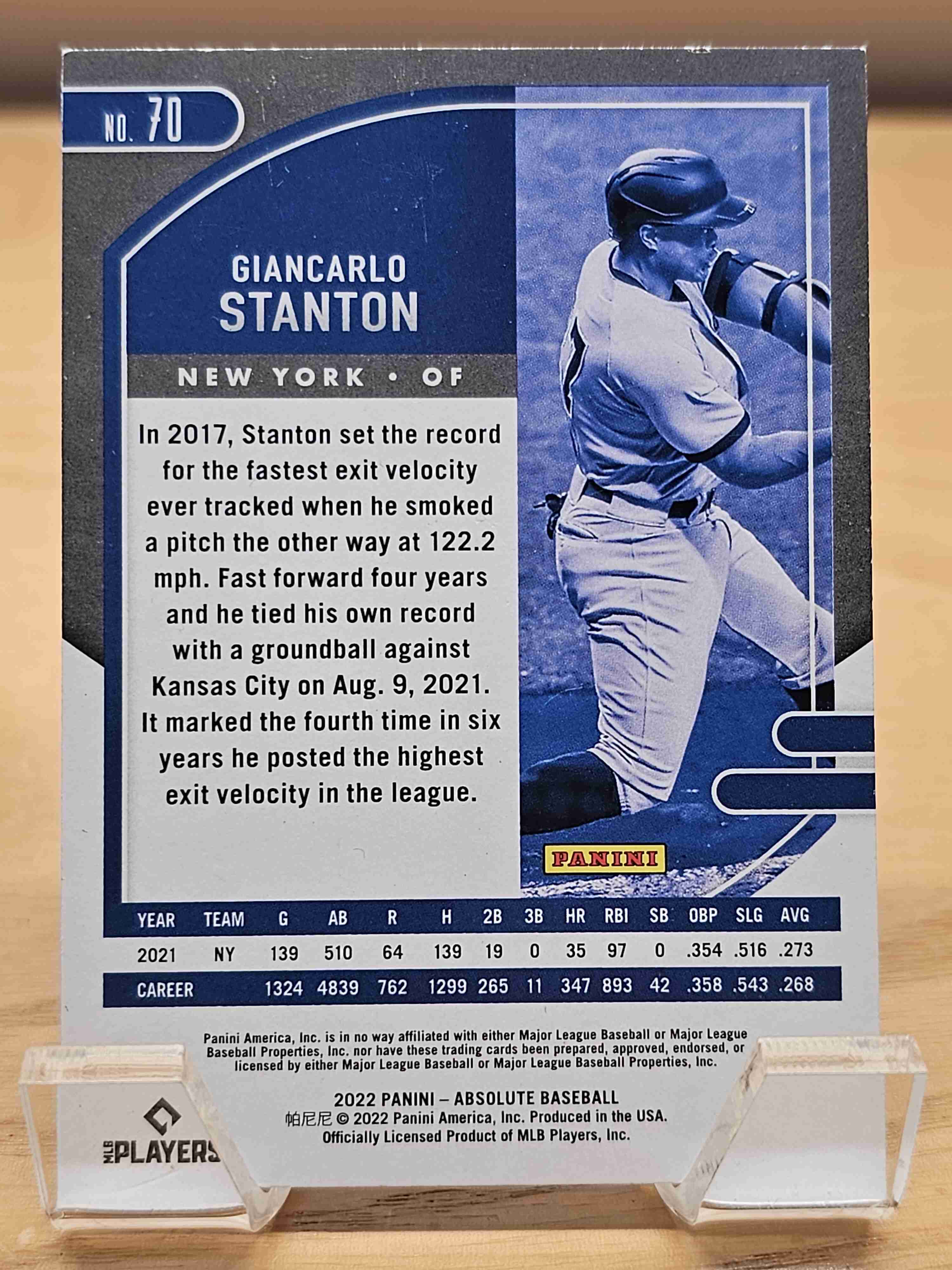 2022 Panini Absolute Baseball Green Parallel Giancarlo Stanton New York Yankees Card #70