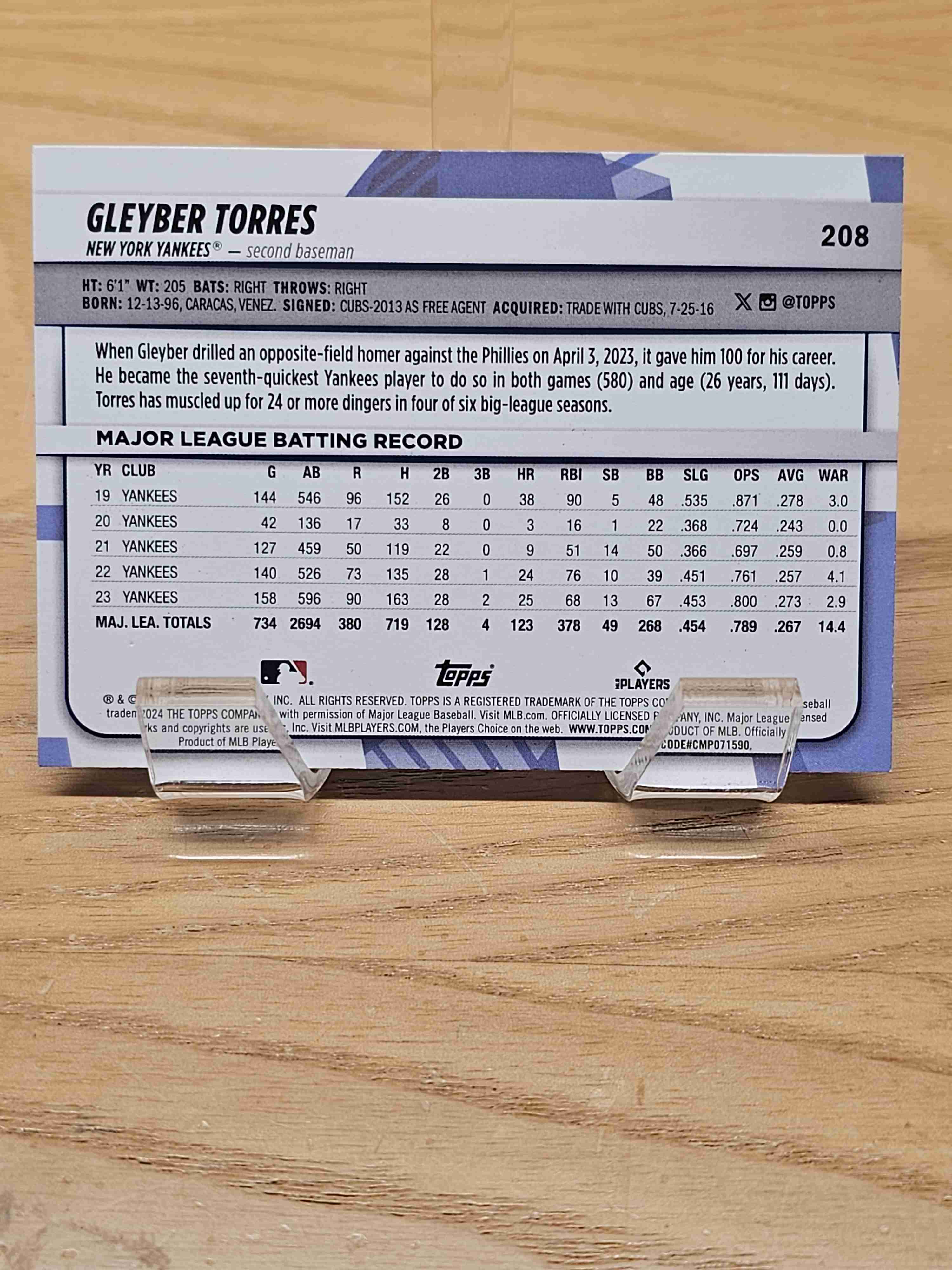 2024 Big League Rainbow Foil Gleyber Torres Yankees #208
