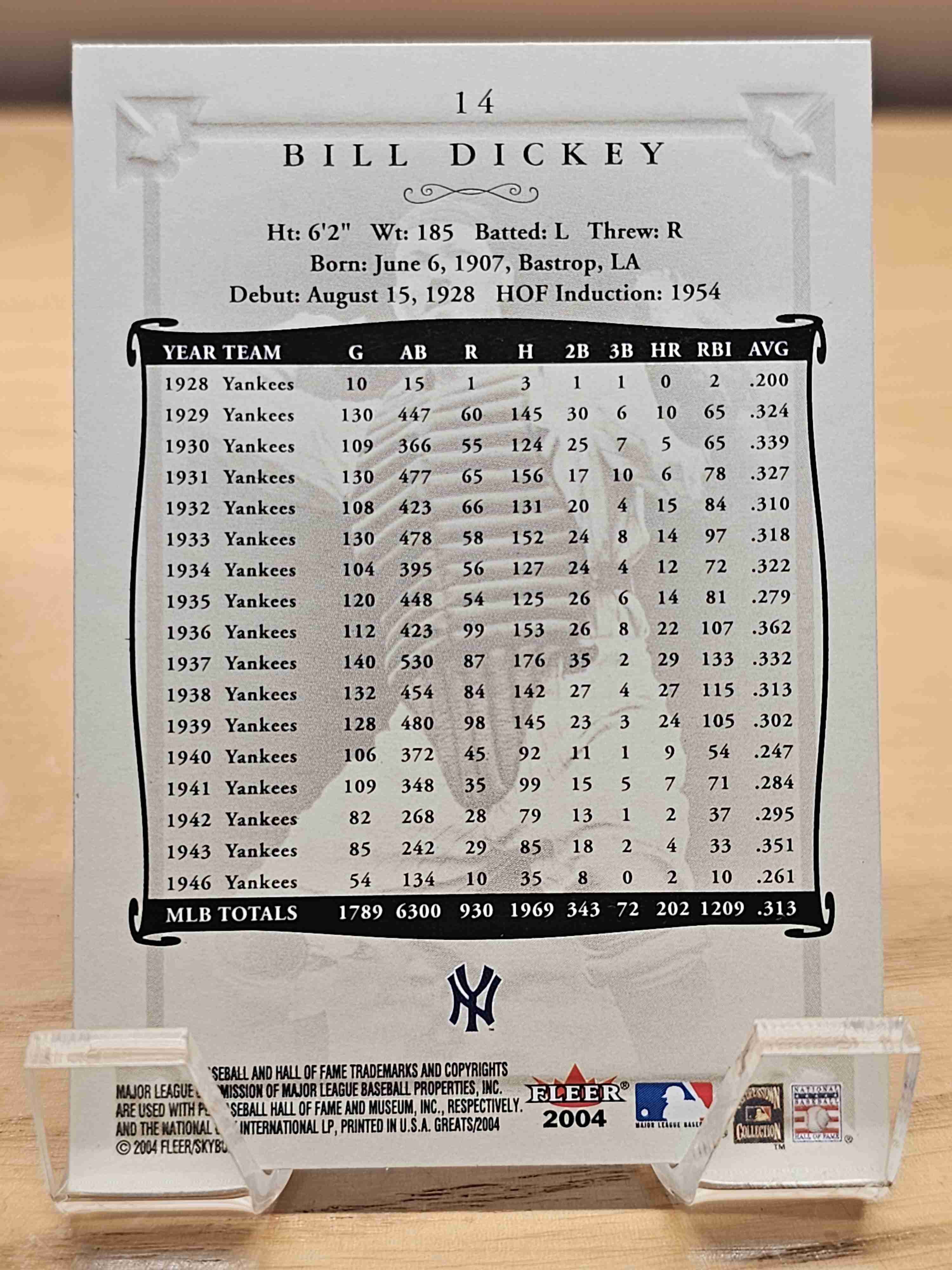 2004 Fleer Baseball Greats Of The Game Bill Dickey New York Yankees Card #14