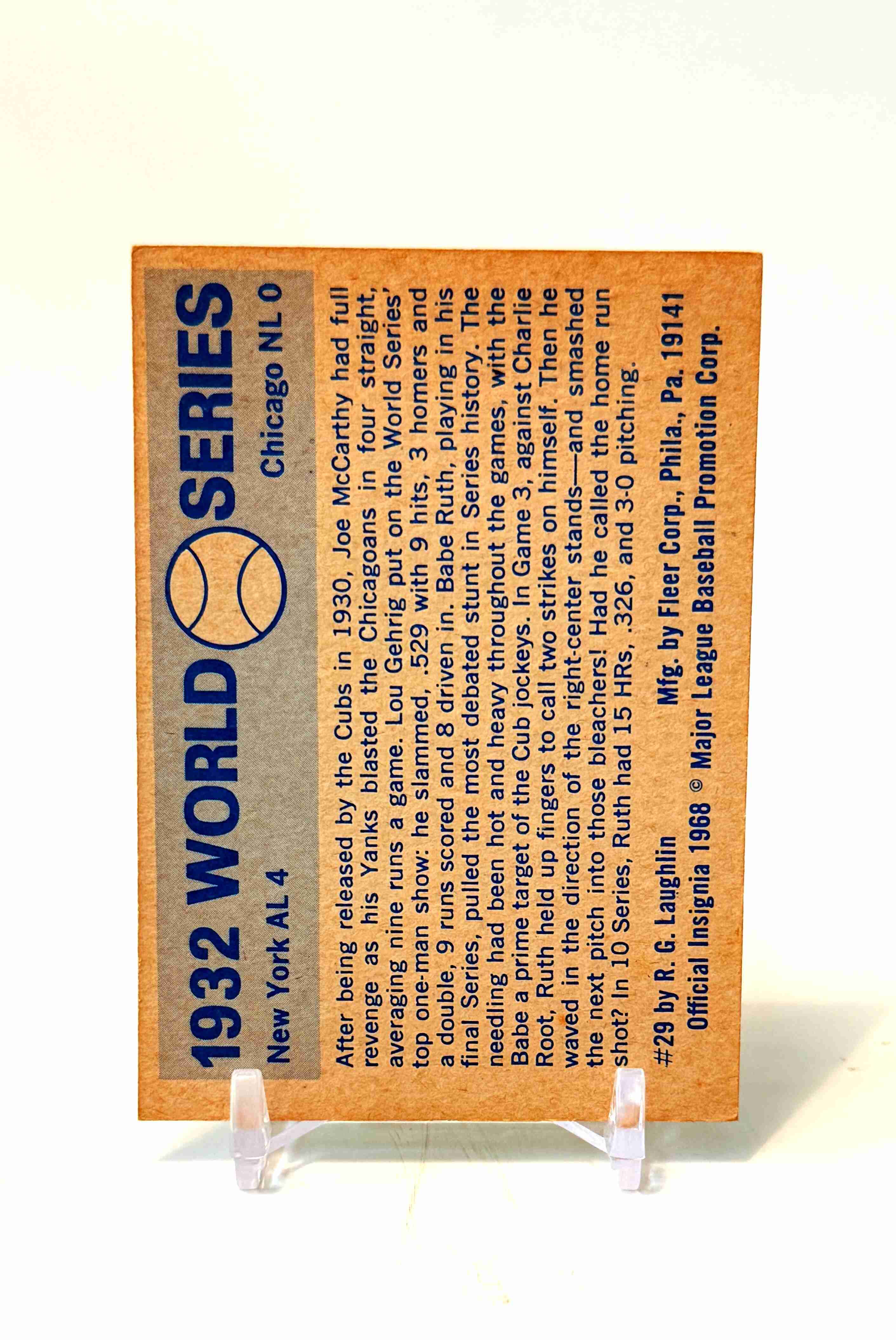 Babe Ruth1970 Fleer WORLD SERIES 1932 Yankees #29 Blue Back