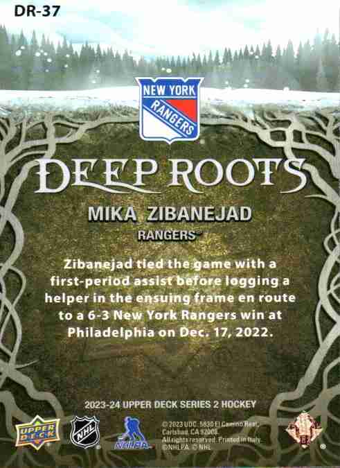 Mika Zibanejad #DR-37 2023 Upper Deck Deep Roots