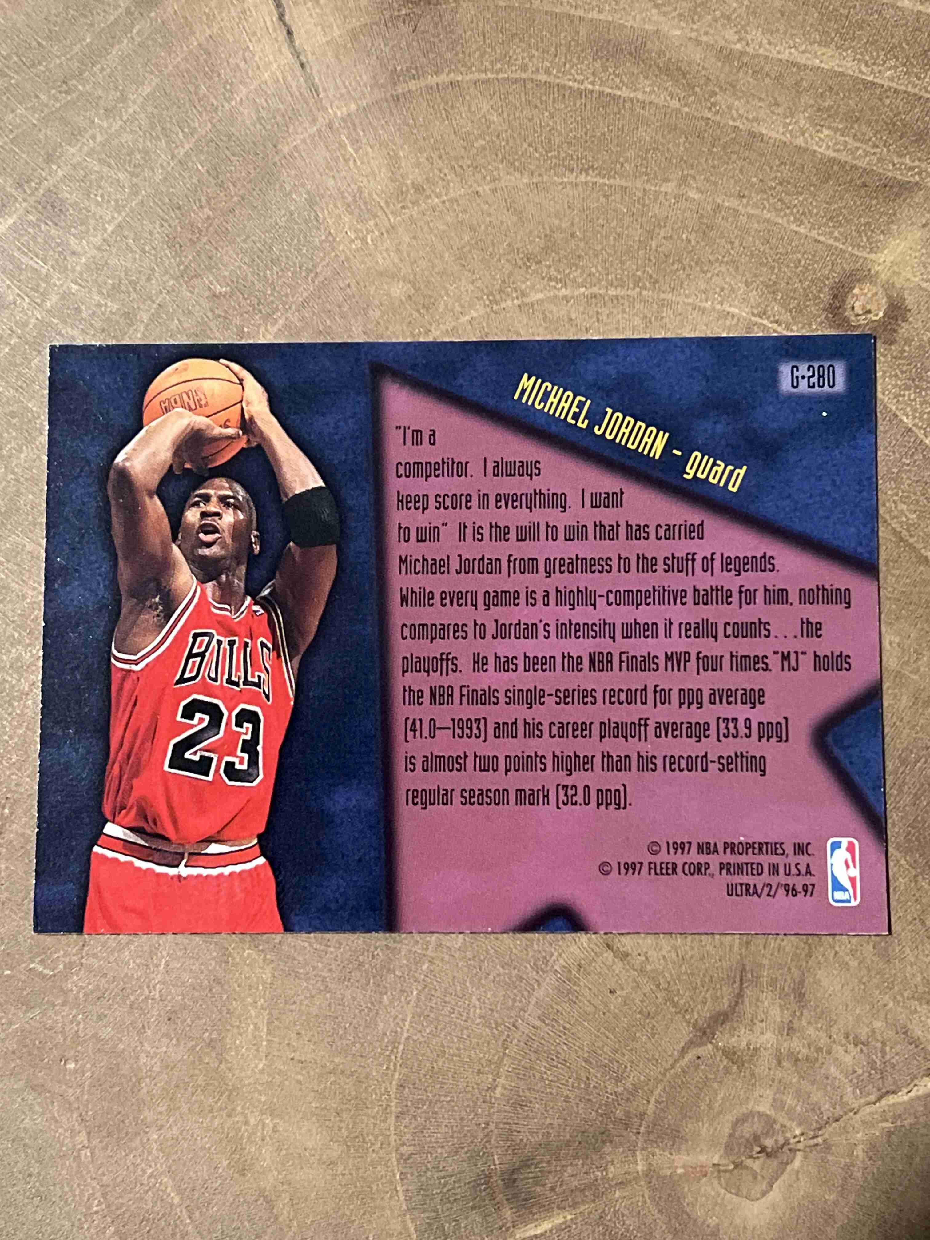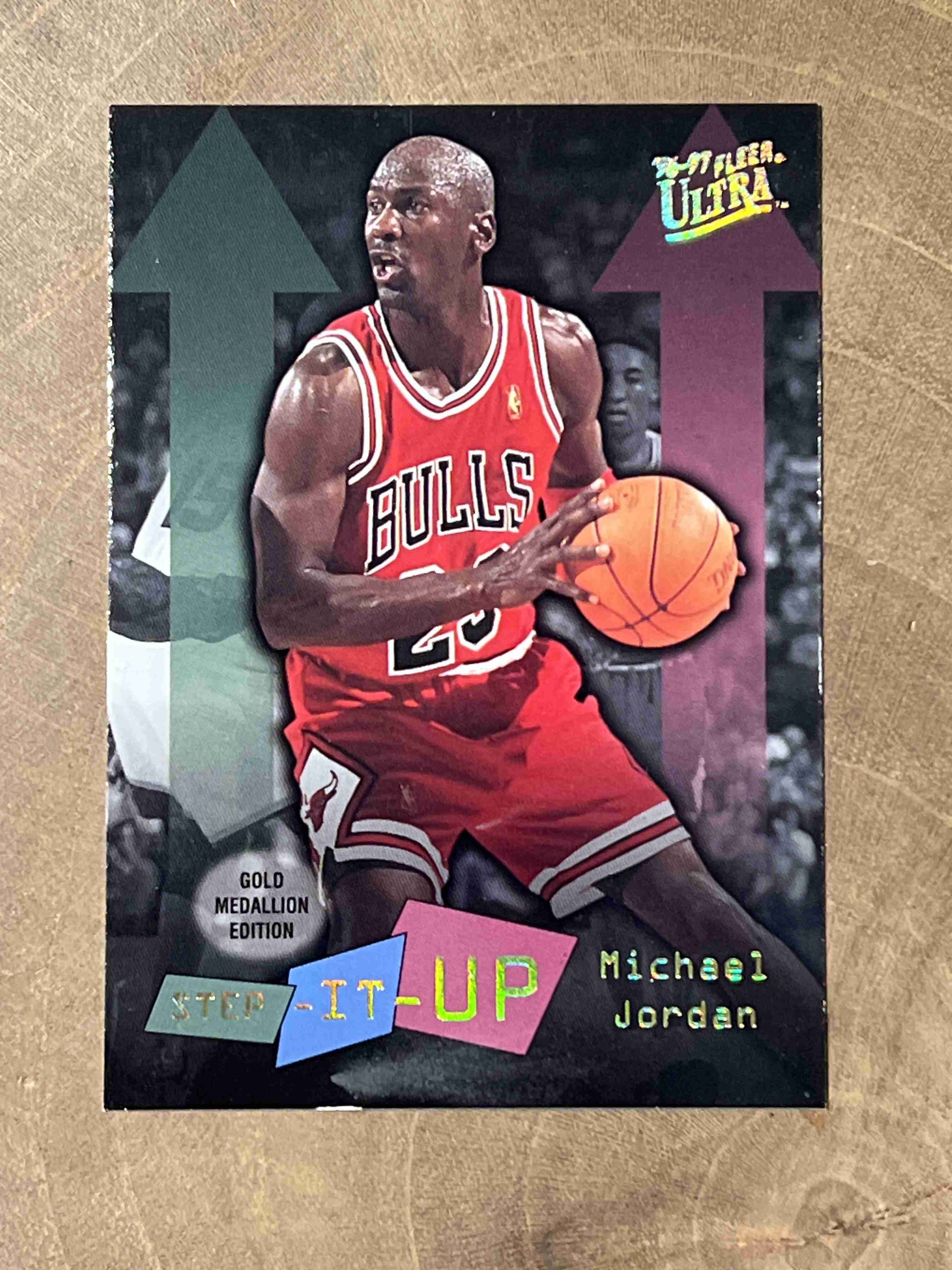 The 1996-97 Fleer Ultra Step-It-Up Michael Jordan #G-280 Gold Medallion Edition is a highly sought-after sports trading card featuring basketball legend Michael Jordan from the Chicago Bulls