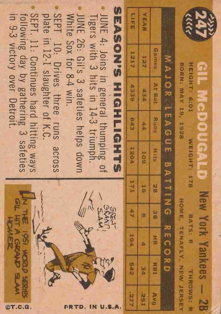 1960 Topps #247 Gil McDougald NY Yankess