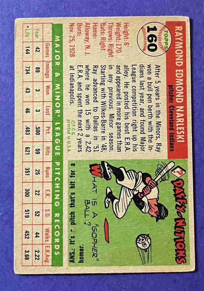 55 Topps RAY NARLESKI Semi-Hi #160 +++