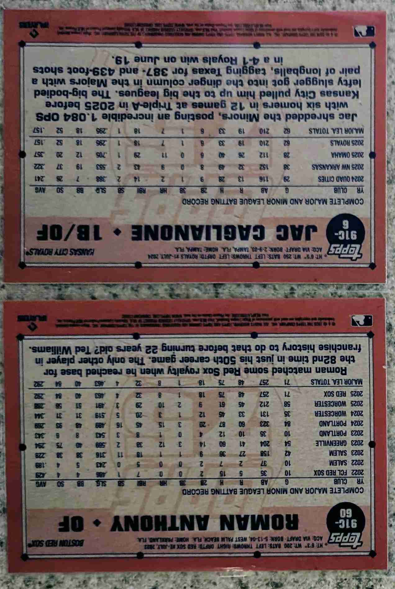 FOR AUCTION IS A 2-CARD LOT OF 2026 TOPPS SILVER PACK MOJOS OF ROMAN ANTHONY CUP RC AND JAC CAGLIANONE RC. CARD NUMBERS #91C-60 AND #91C-6