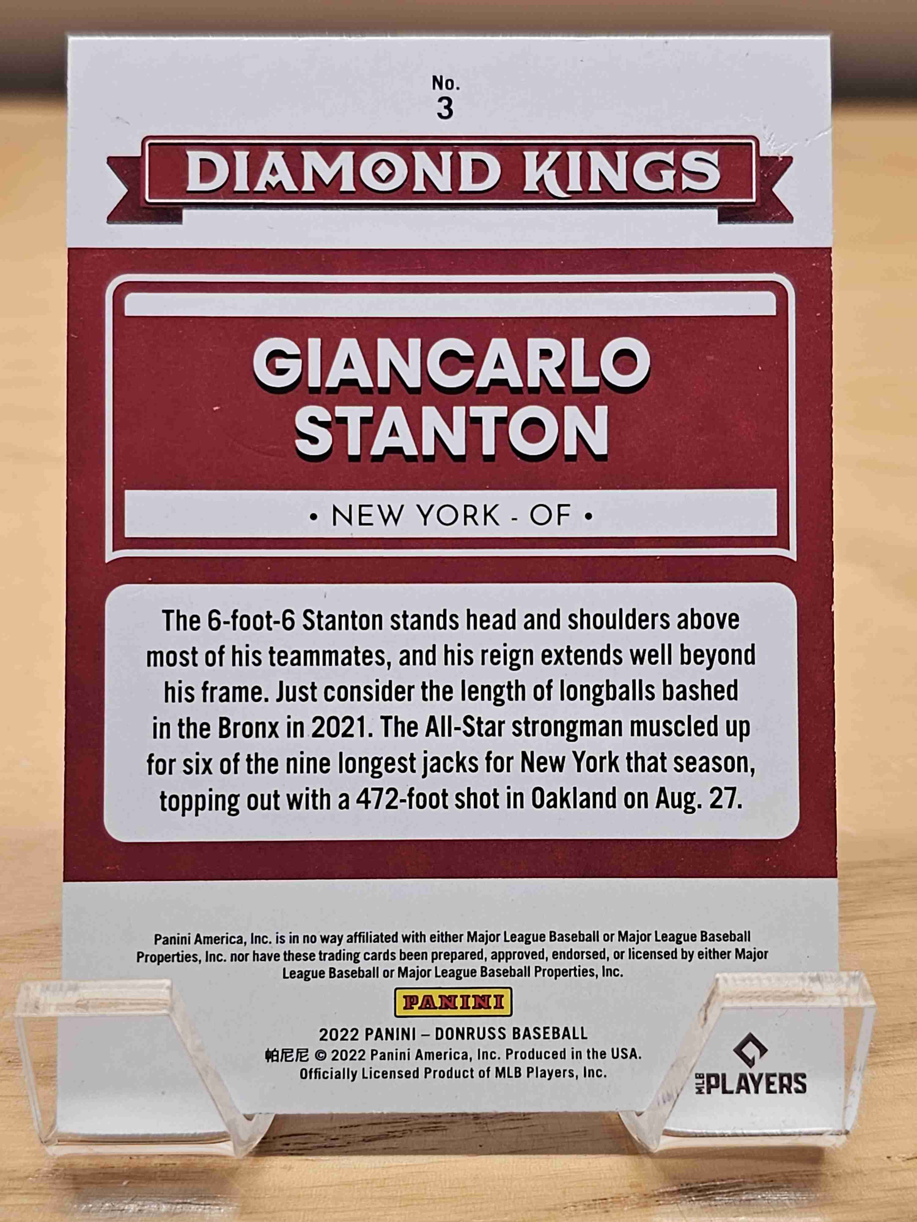 2022 Panini Donruss Baseball Diamond Kings Giancarlo Stanton New York Yankees Card #3