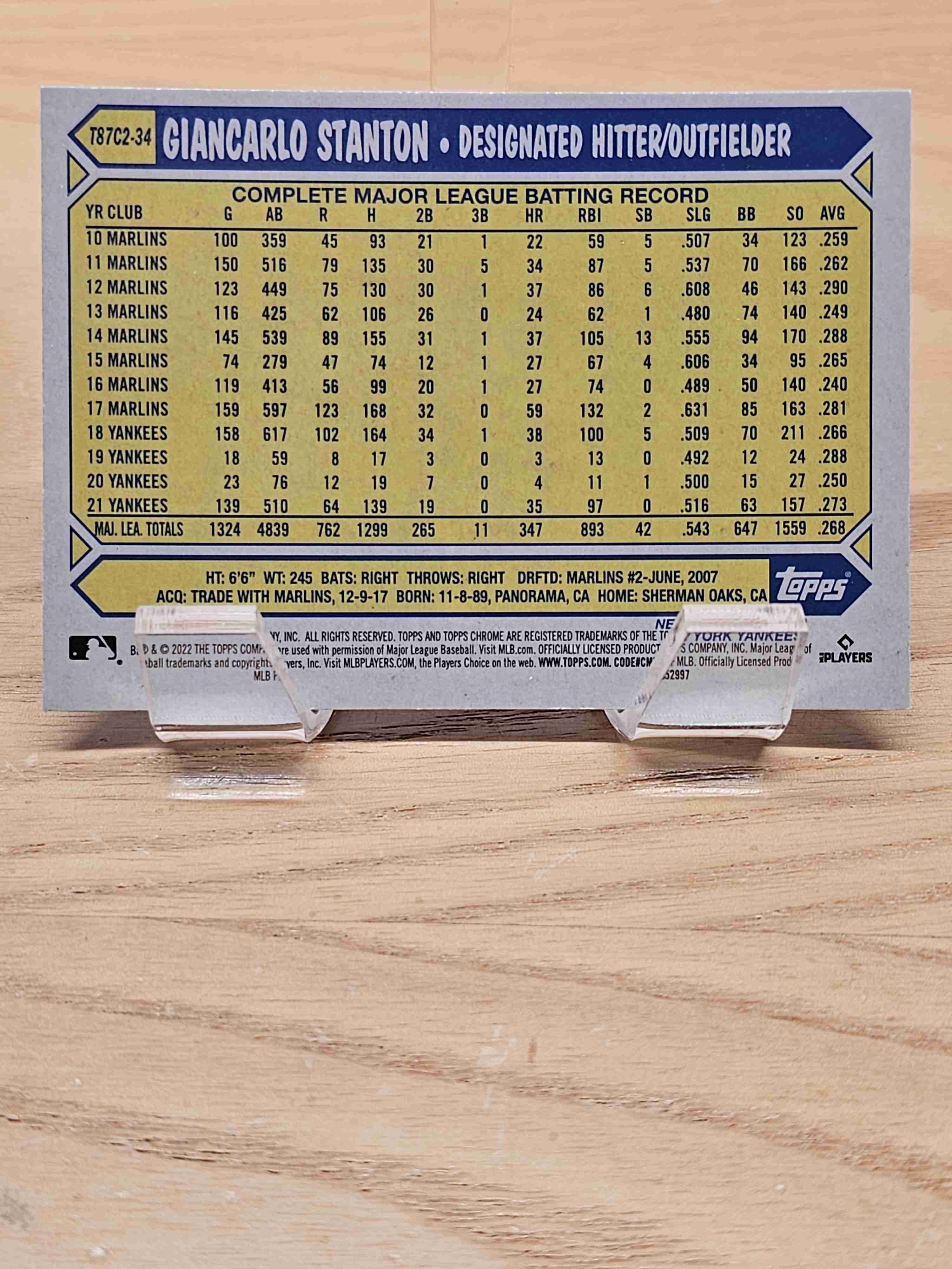 2022 Topps Baseball Topps Chrome 1987 Topps Mojo 35th Anniversary Giancarlo Stanton New York Yankees Card #T87C2-34