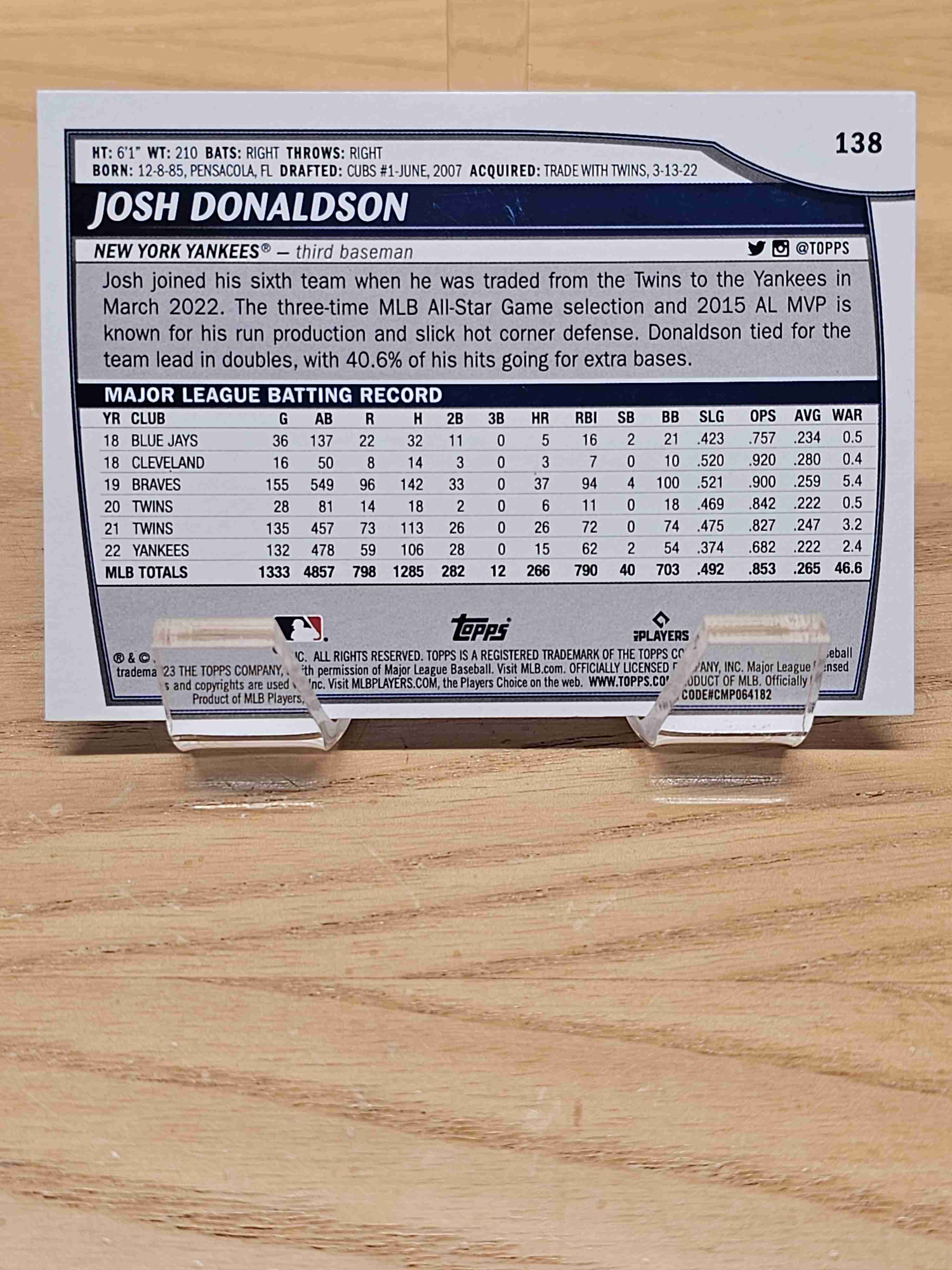 2023 Big League Base Card Josh Donaldson Yankees #138