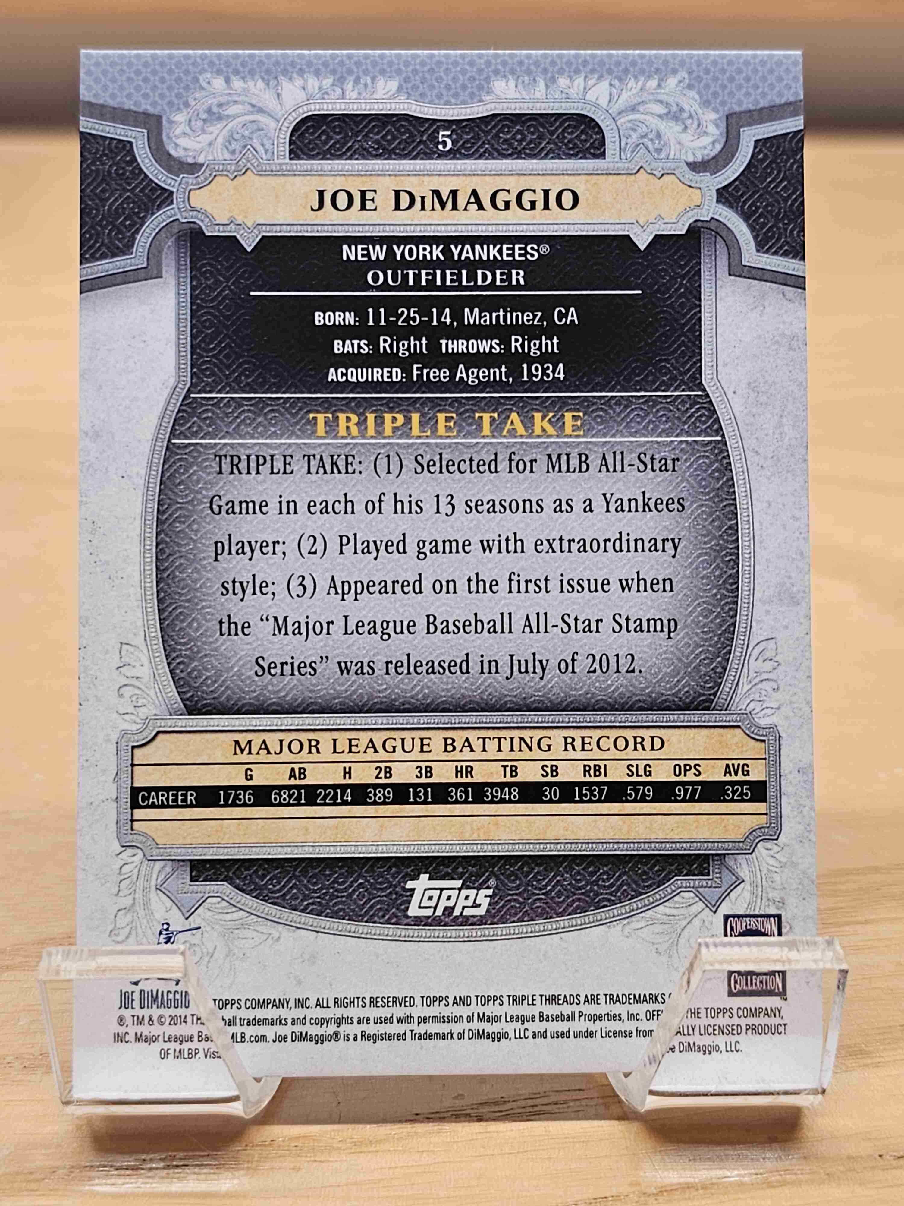 2014 Topps Triple Threads Baseball Emerald Parallel /250 Joe DiMaggio New York Yankees Card #5