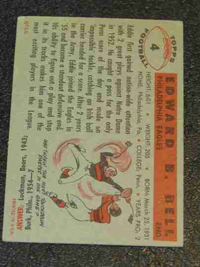 1956 Topps Football #4 Eddie Bell - VG - BV $8