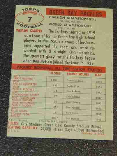 1956 Topps Football #7 GB Packers TC - VG+/EX - BV $25