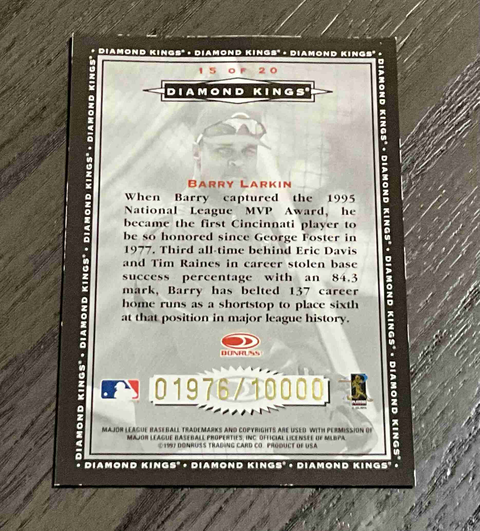 Barry Larkin Diamond Kings /10000 1997 Donruss Reds