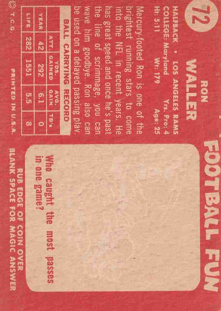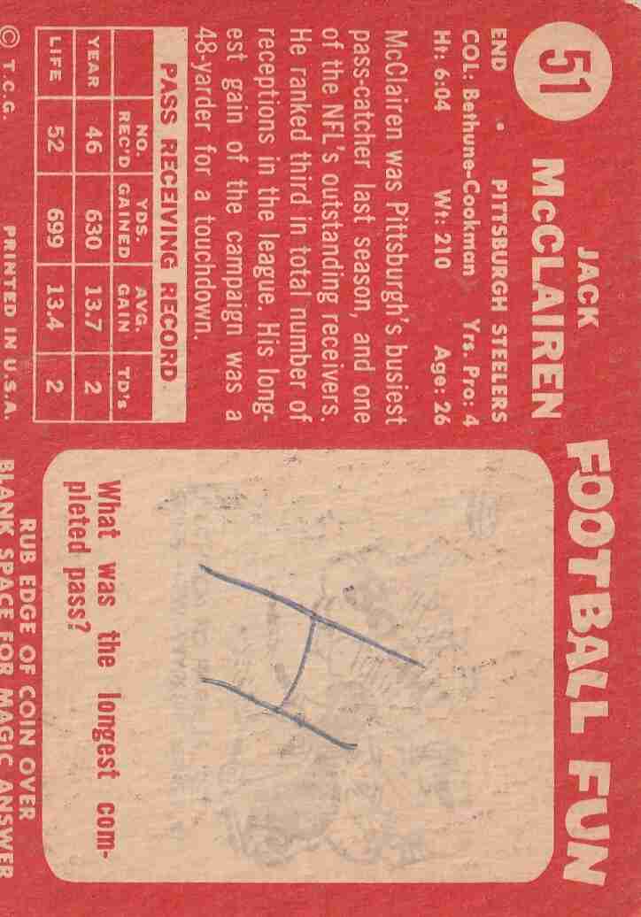 #51 Jack McClairen Steelers (EX/EX+) ink mark on back #72 Ron Waller Rams (EX+/Better)