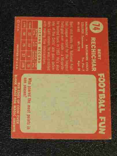 1958 Topps Football #74 Bert Rechichar - EX/EX+ - BV $8