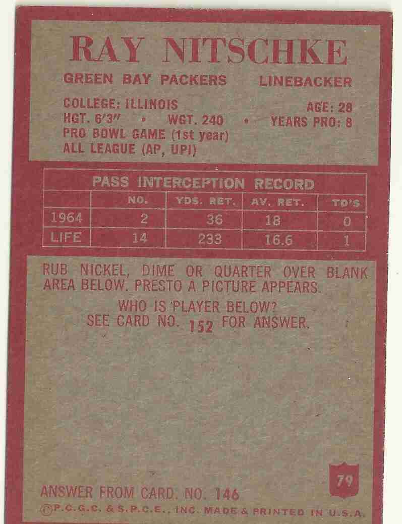 1965 Philadelphia #79 RAY NITSCHKE Packers EX/NM