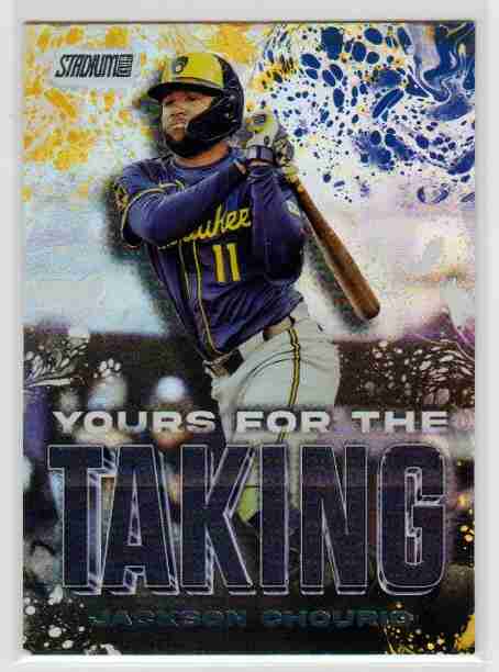 Please take a look at the photo for details on the card's condition. The card you are bidding on is the card pictured. This auction is for a 2025 Topps Stadium Club Yours for the Taking insert #YK-13 Jackson Chourio. If you have any questions or require more detailed images, please don't hesitate to ask. Note: The shipping price shown is for PWE. The card will ship with a tracking number if the final auction price exceeds a certain dollar amount (or when combined with some other completed auctions). Otherwise, the card will be shipped PWE. Thank you!