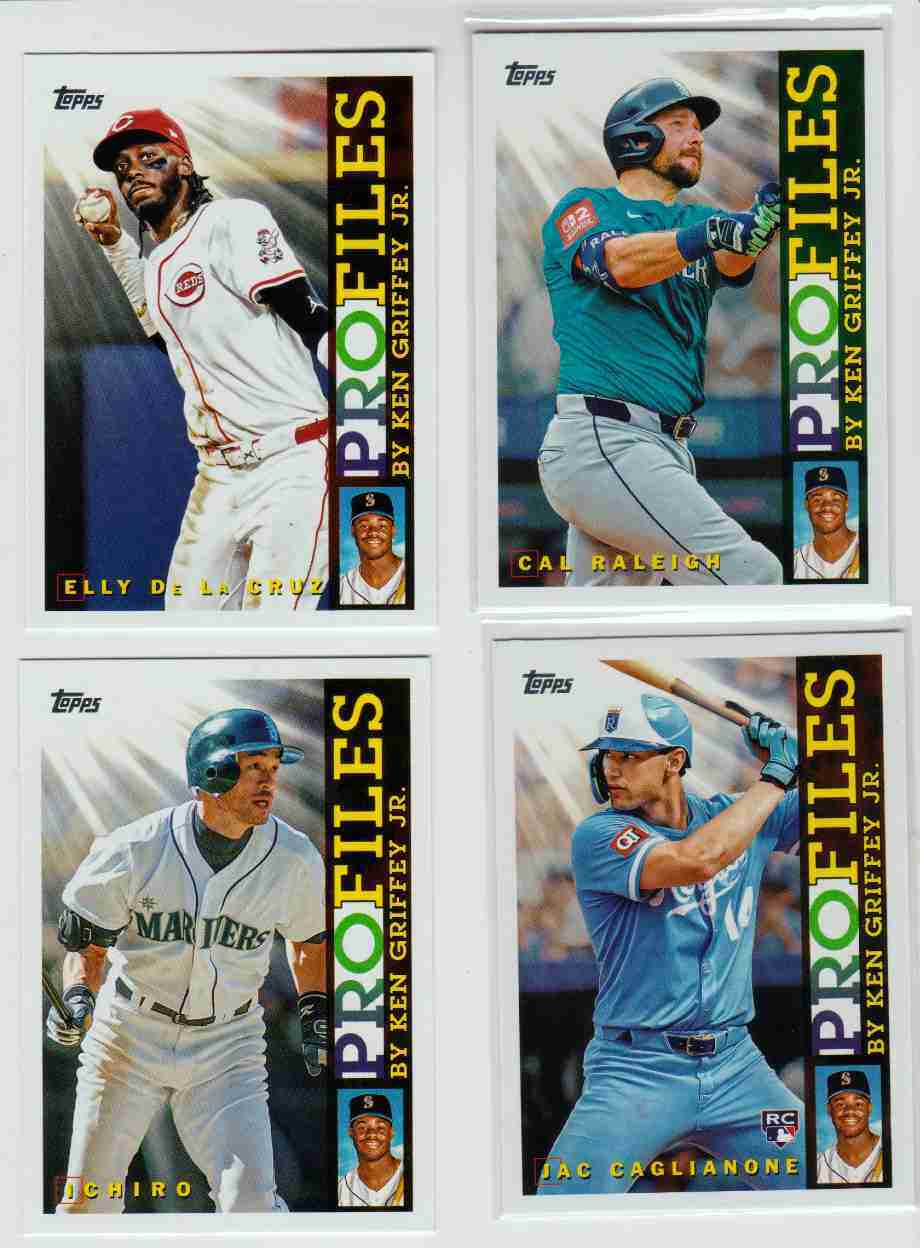 Please take a look at the photos for details on the cards' condition. The cards you are bidding on are the cards pictured. This auction is for 4 2026 Topps Series 1 Profiles By Ken Griffey Jr. inserts. They are Elly De La Cruz, Cal Raleigh, Jac Caglianone RC, and Ichiro. You can use your judgment on the grade of the cards. If you have any questions or require more detailed photos, please don't hesitate to ask. Note: The shipping price shown is for PWE. The card will ship with a tracking number if the final auction price exceeds a certain dollar amount (or if it is combined with the appropriate number of other completed auctions). Otherwise, the card will be shipped PWE. Thank you!