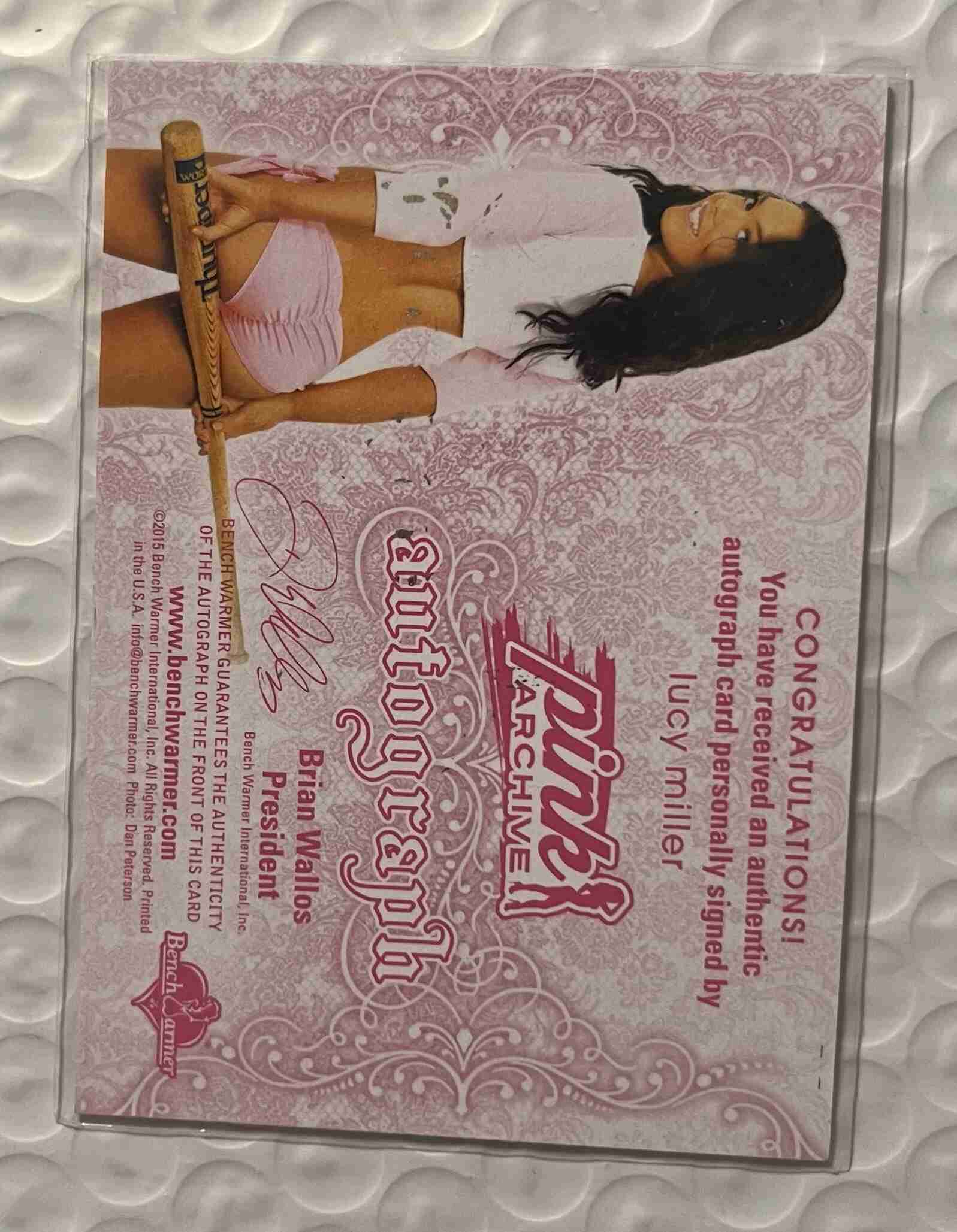 This auction is of a 2015 Bench Warmer Lucy Miller Autograph card. Card is Nrmt condition. Look at the pics and judge for yourself. If any questions please feel free to contact me. Thank you for looking at my auctions.