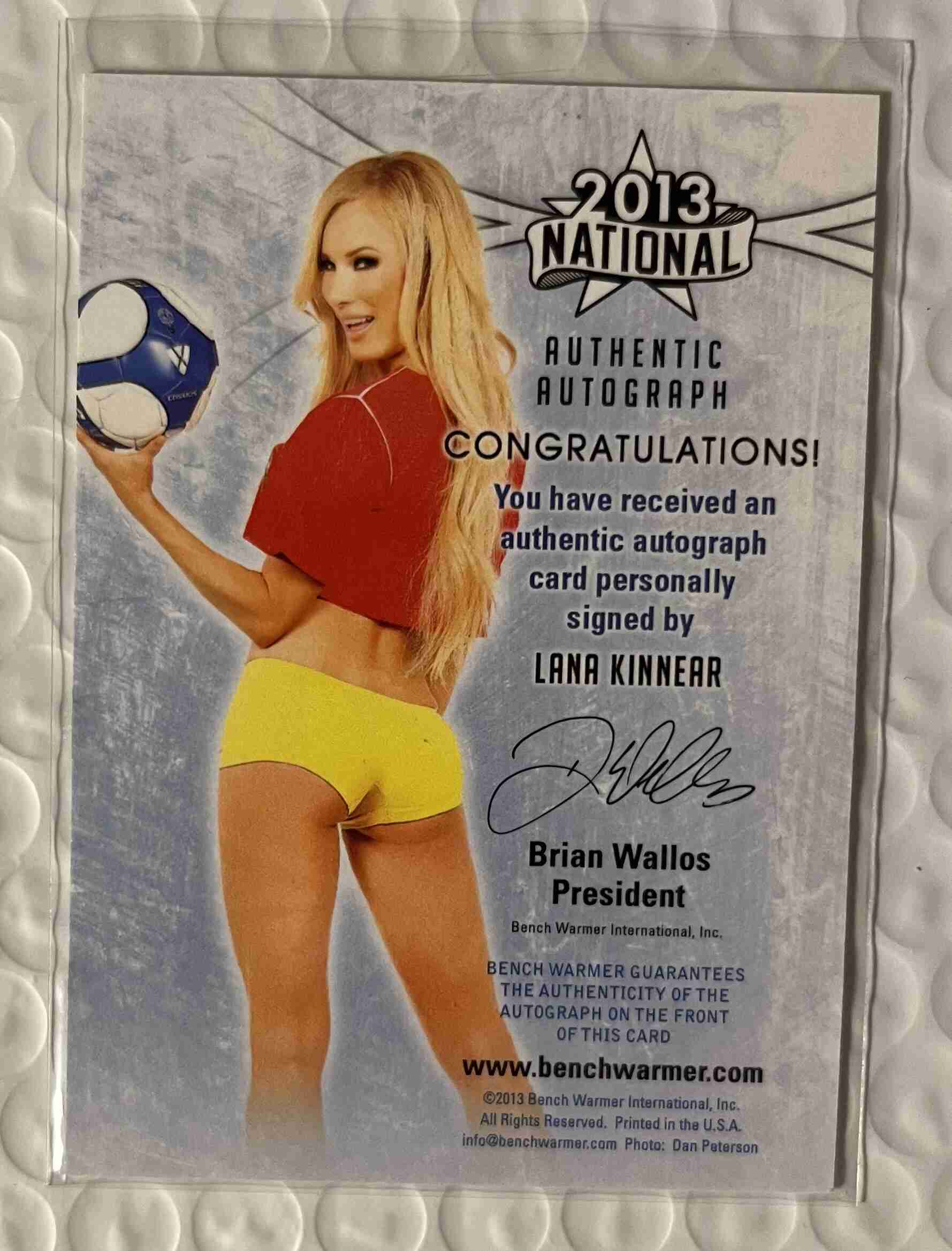 This auction is of a 2013 Bench Warmer Lana Kinnear Autograph card. Card is Nrmt condition. Look at the pics and judge for yourself. If any questions please feel free to contact me. Thank you for looking at my auctions.