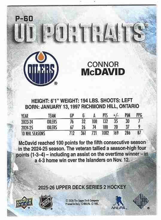 2025/26 UD 2 CONNOR MCDAVID PORTRAITS P-60