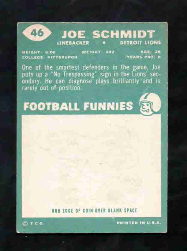 1960 Topps # 46 HOFer JOE SCHMIDT Lions EX+