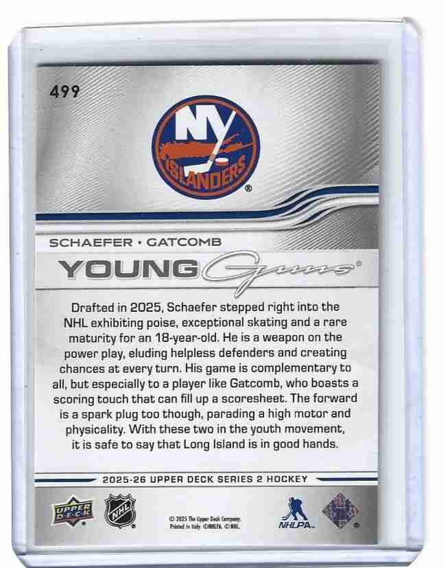 2025/26 UD 2 #499 SCHAEFER/GATCOMB YOUNG GUNS TEAMMATES