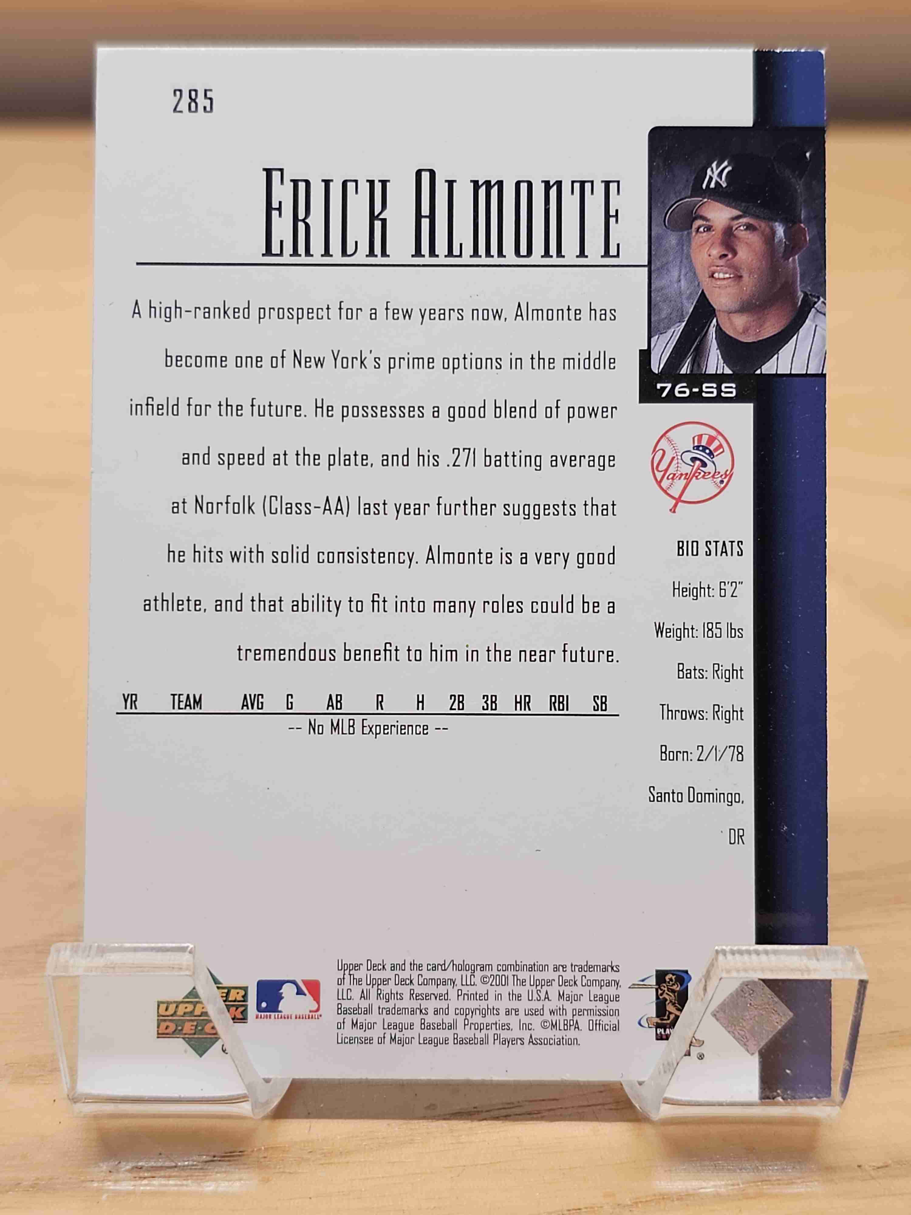2001 Upper Deck baseball Erick Almonte New York Yankees Card #285