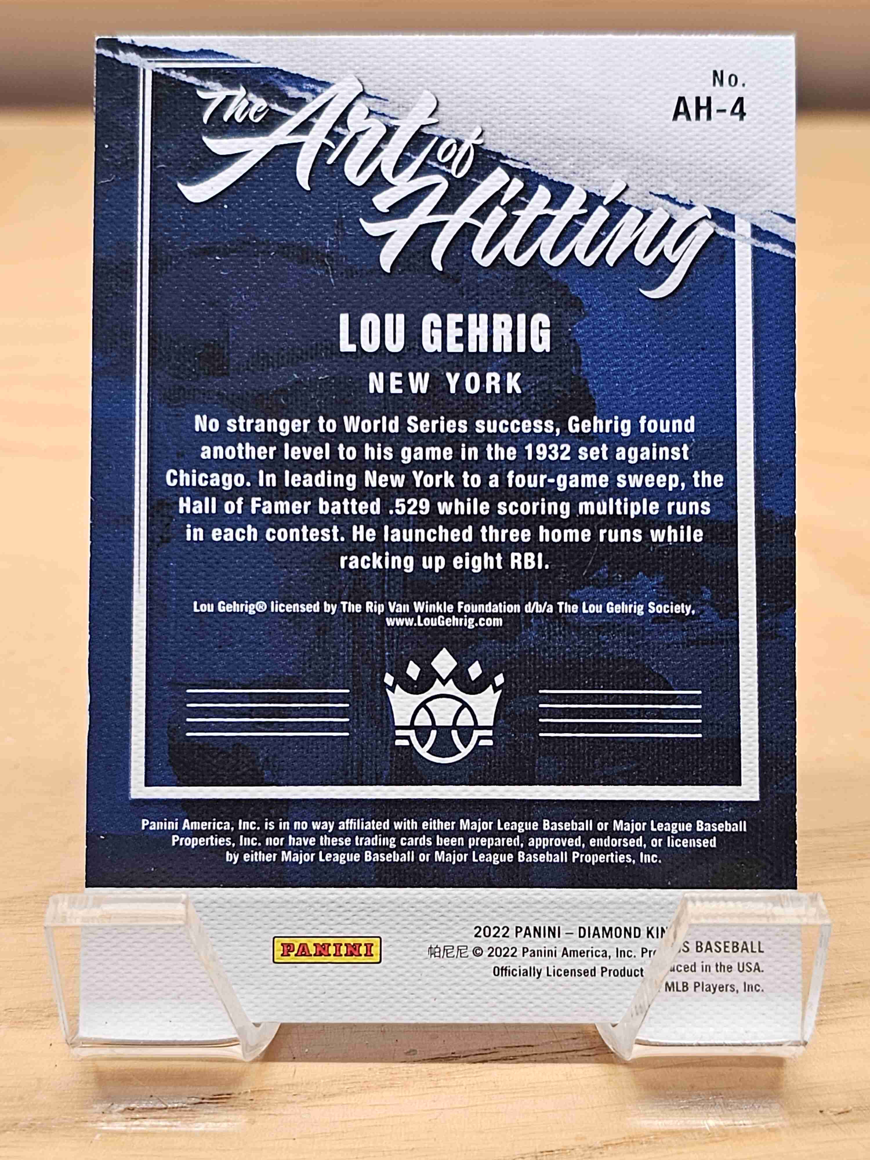 2022 Panini Diamond Kings Baseball The Art Of Hitting Lou Gehrig New York Yankees Card #AH-4