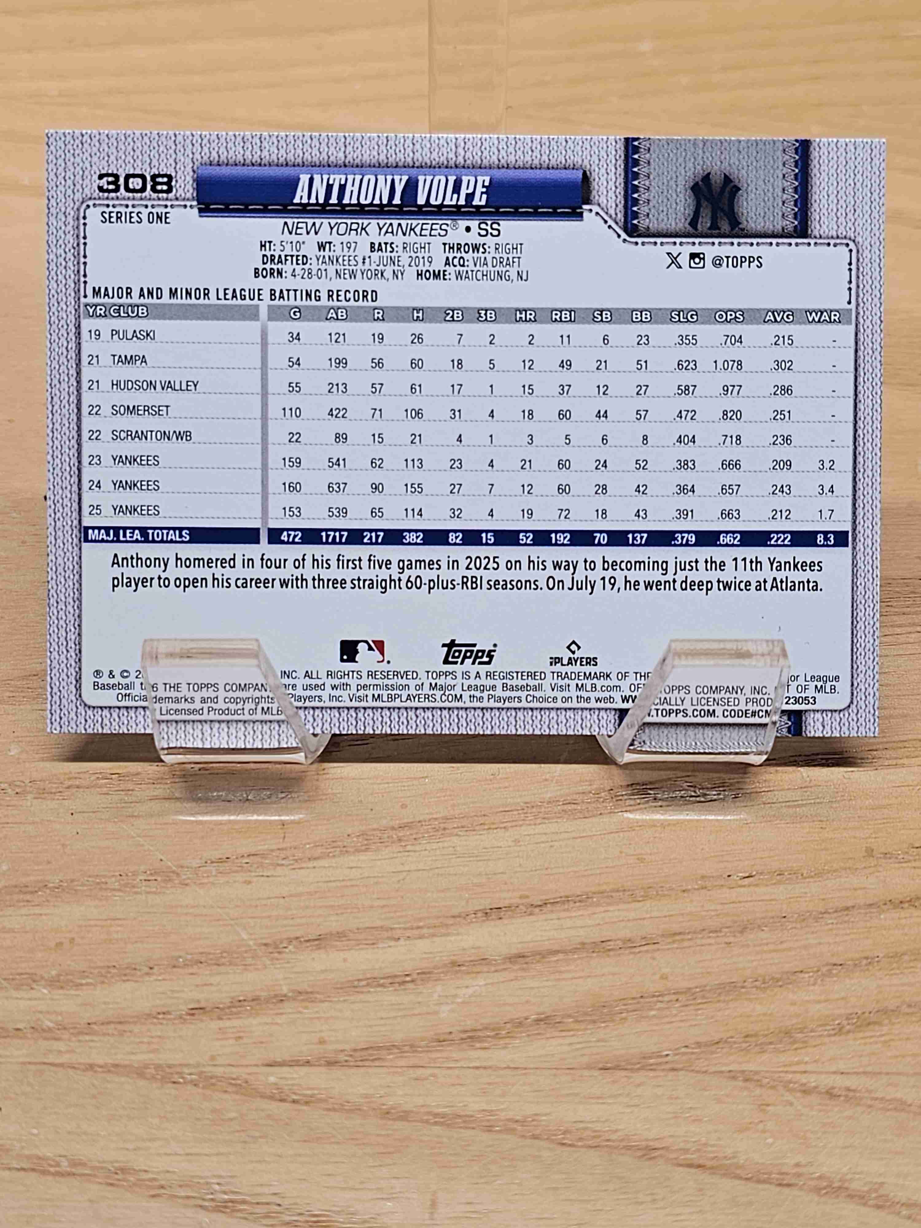 2026 Topps Baseball Spring Training Anthony Volpe New York Yankees Card #308