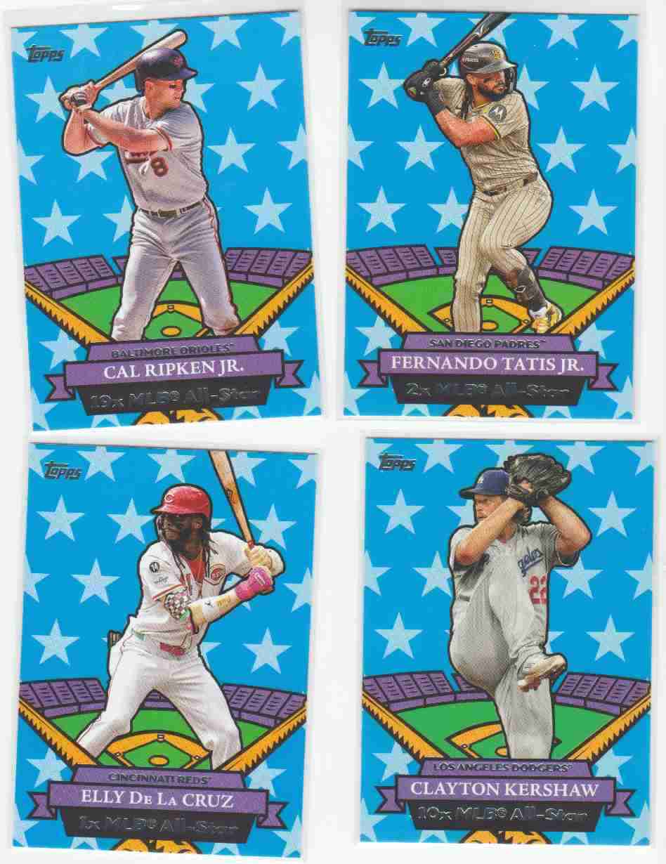 Please take a look at the photos for details on the cards' condition. The cards you are bidding on are the cards pictured. This auction is for 4 2025 Topps Archives 2007 Topps All-Stars inserts. They are Elly De La Cruz, Cal Ripken, Clayton Kershaw, and Fernando Tatis Jr. You can use your judgment on the grade of the cards. If you have any questions or require more detailed photos, please don't hesitate to ask. Note: The shipping price shown is for PWE. The card will ship with a tracking number if the final auction price exceeds a certain dollar amount (or if it is combined with the appropriate number of other completed auctions). Otherwise, the card will be shipped PWE. Thank you!