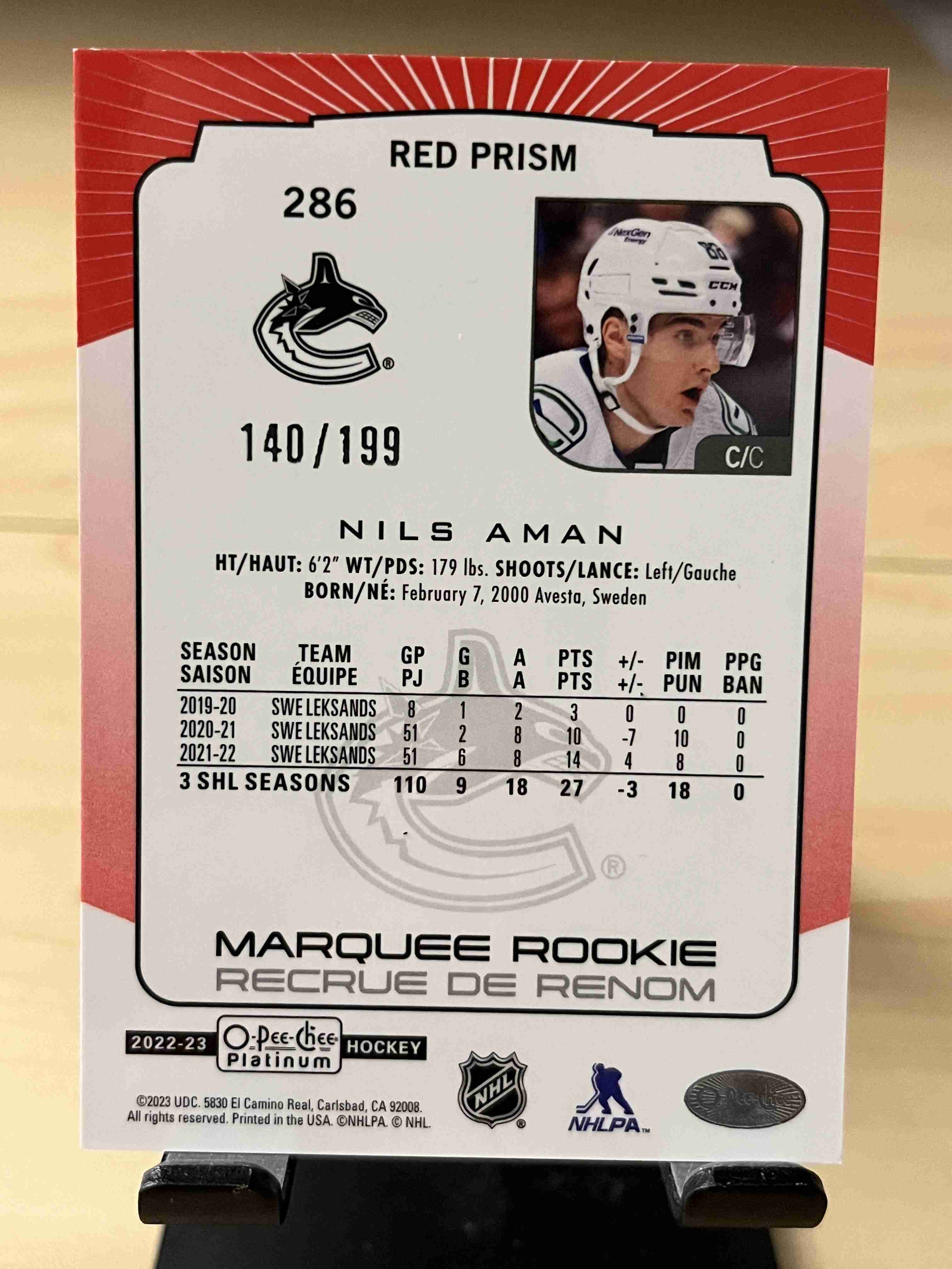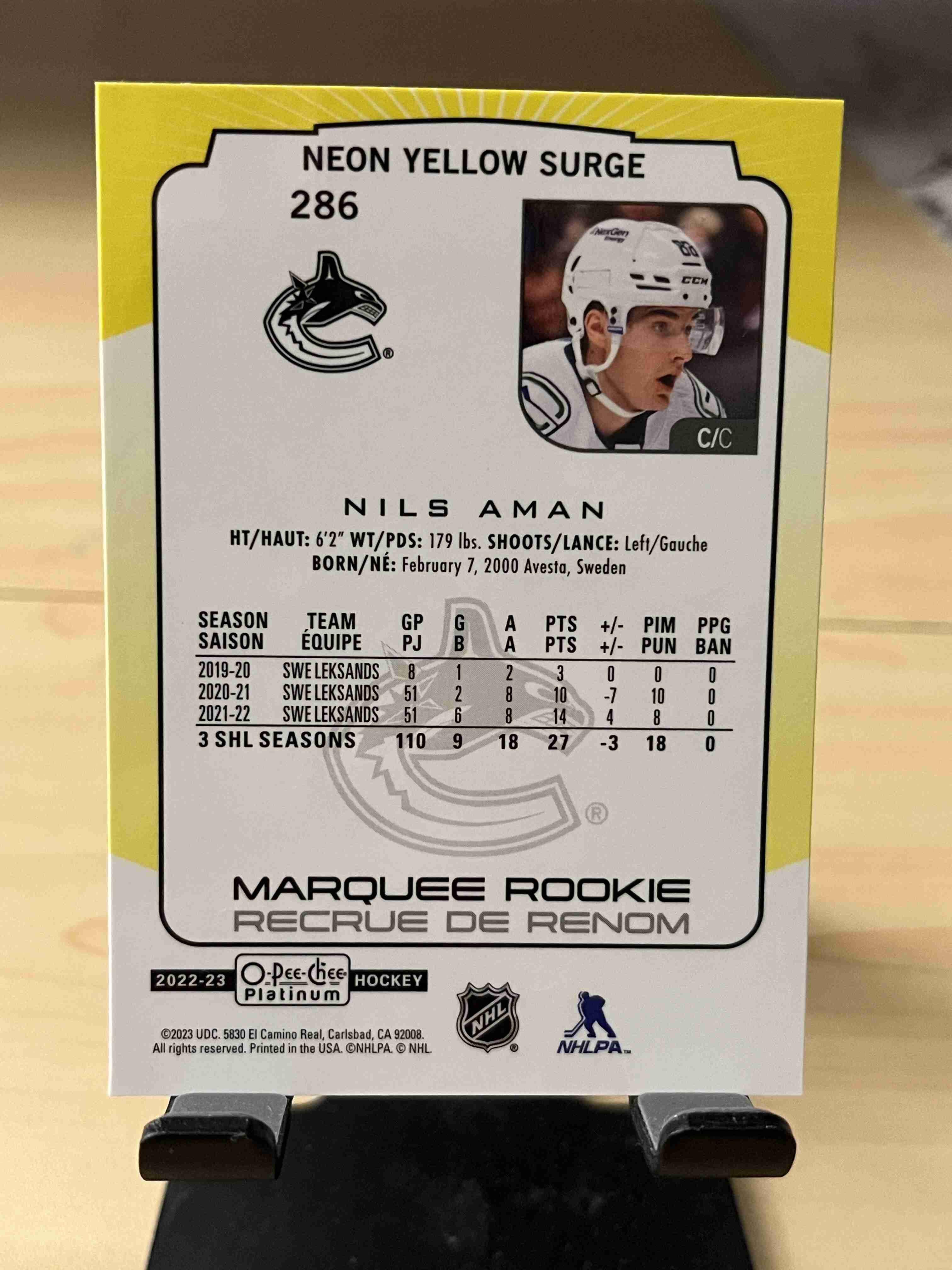 Nils Aman 2023-24 OPC Platinum RC Yellow Surge & Red Prism