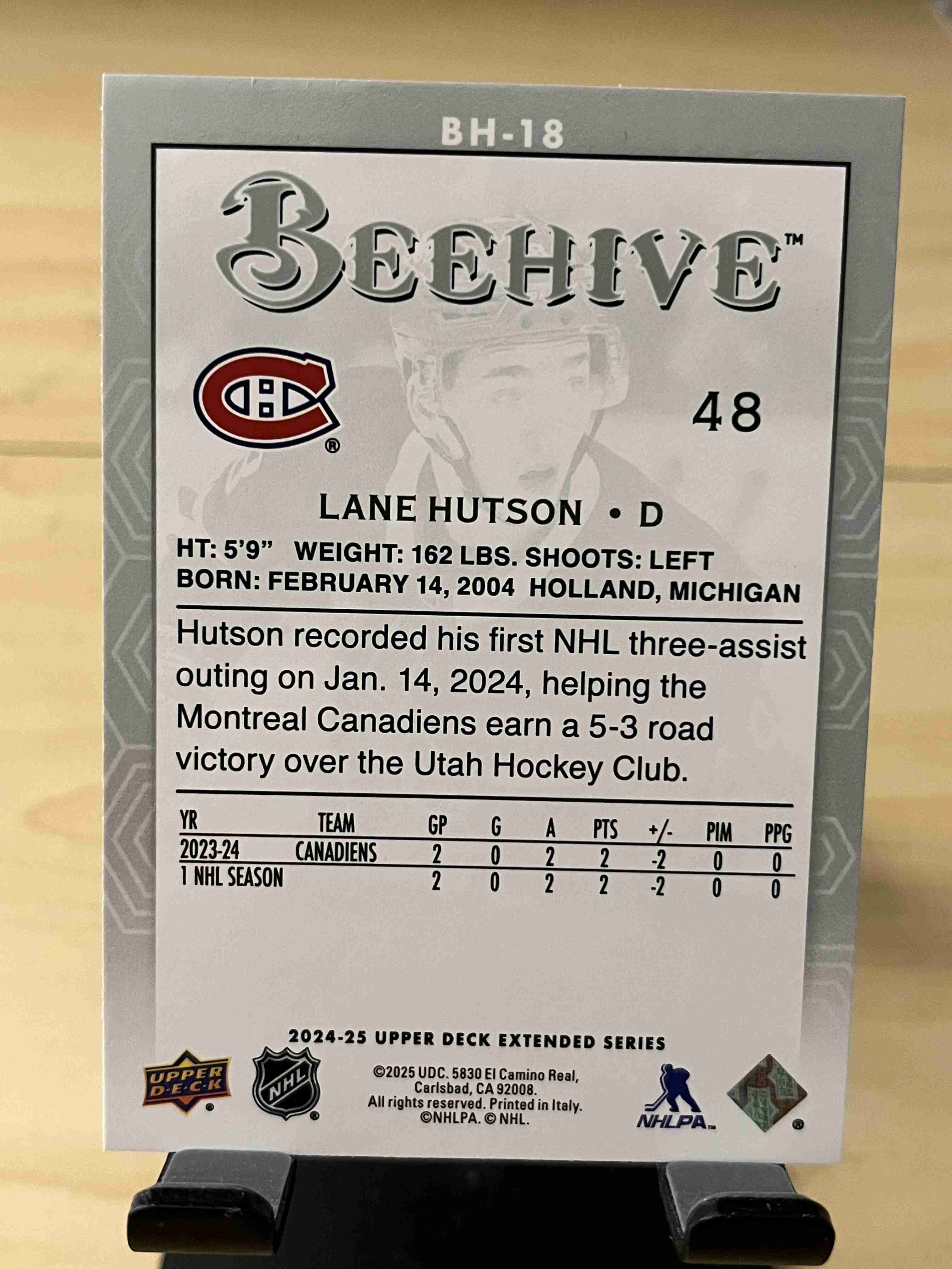 Lane Hutson 2024-25 UD Beehive Rookie Card #BH-18