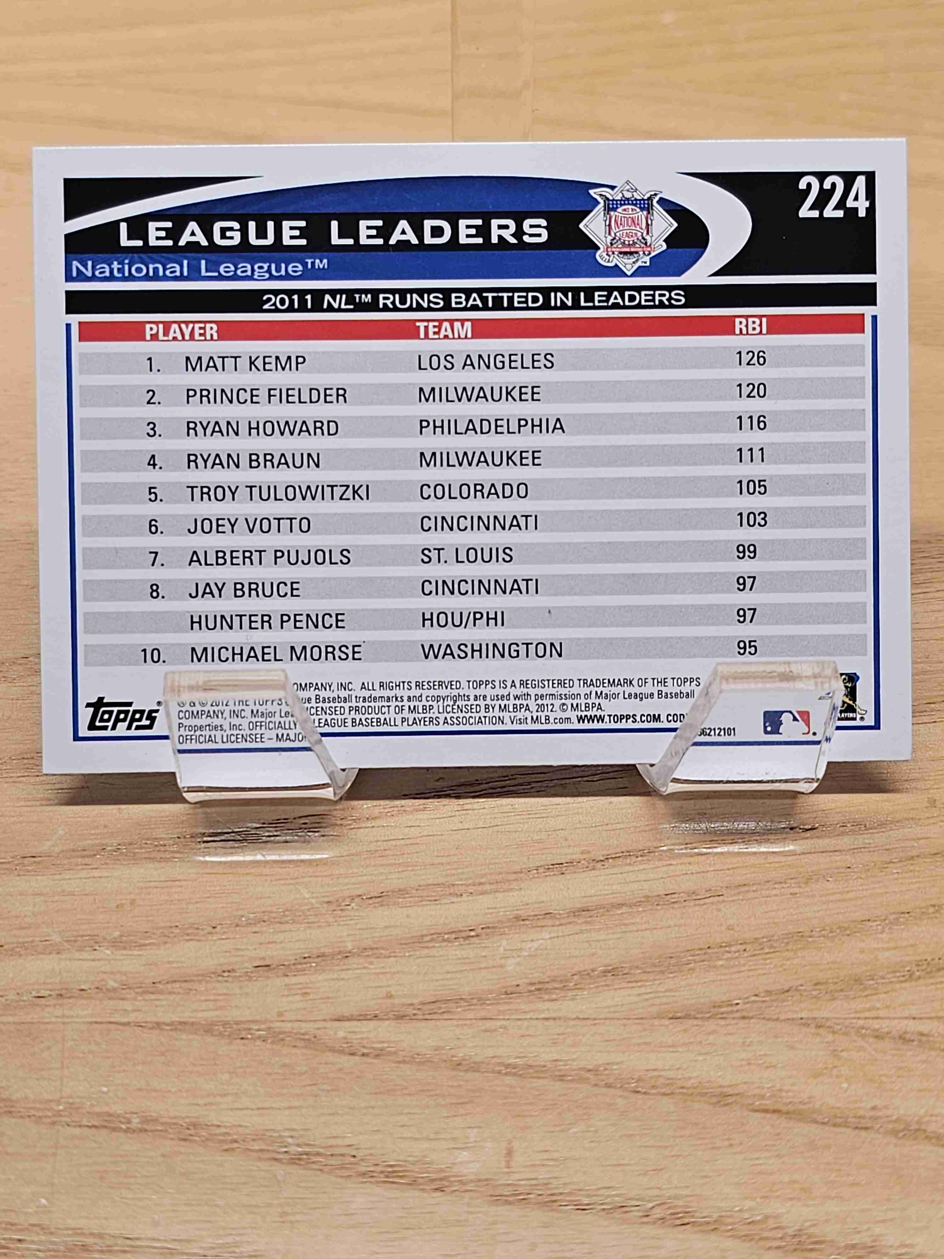 2012 Topps Baseball 2011 RBI Leaders Matt Kemp Prince fielder Ryan Howard Los Angeles Dodgers Milwaukee Brewers Philadelphia Phillies Card #224