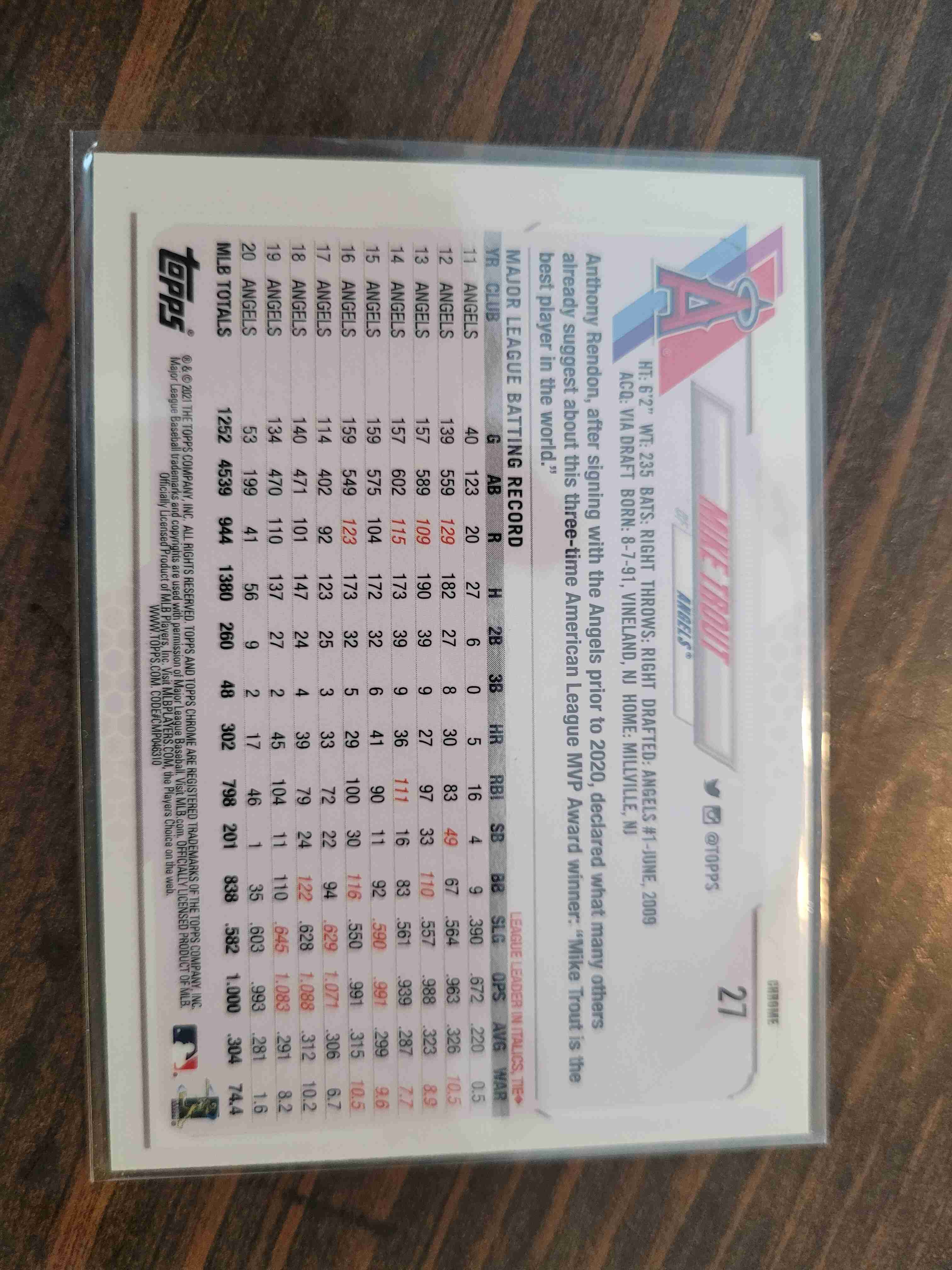 2021 TOPPS CHROME PRIZM REFRACTOR MIKE TROUT #27